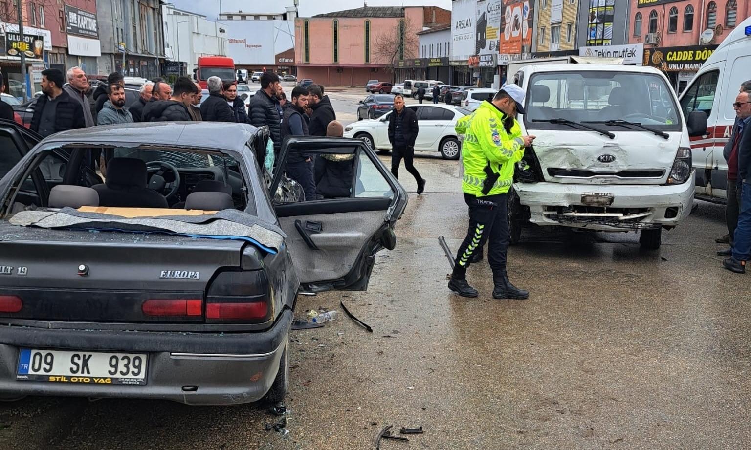 Kaza saat 15.30 sıralarında Mahmudiye mahallesi Tandoğan caddesi üzerinde meydana geldi. 2.Köprülü sokaktan Tandoğan caddesine seyir halinde olan Sürücü Ercan S.(57) yönetimindeki 16 KRF 25 plakalı kamyonet, Diriliş caddesinden gelen sürücü Cemal G.(19) yönetimindeki 09 SK 939 plakalı otomobile yandan çarptı.