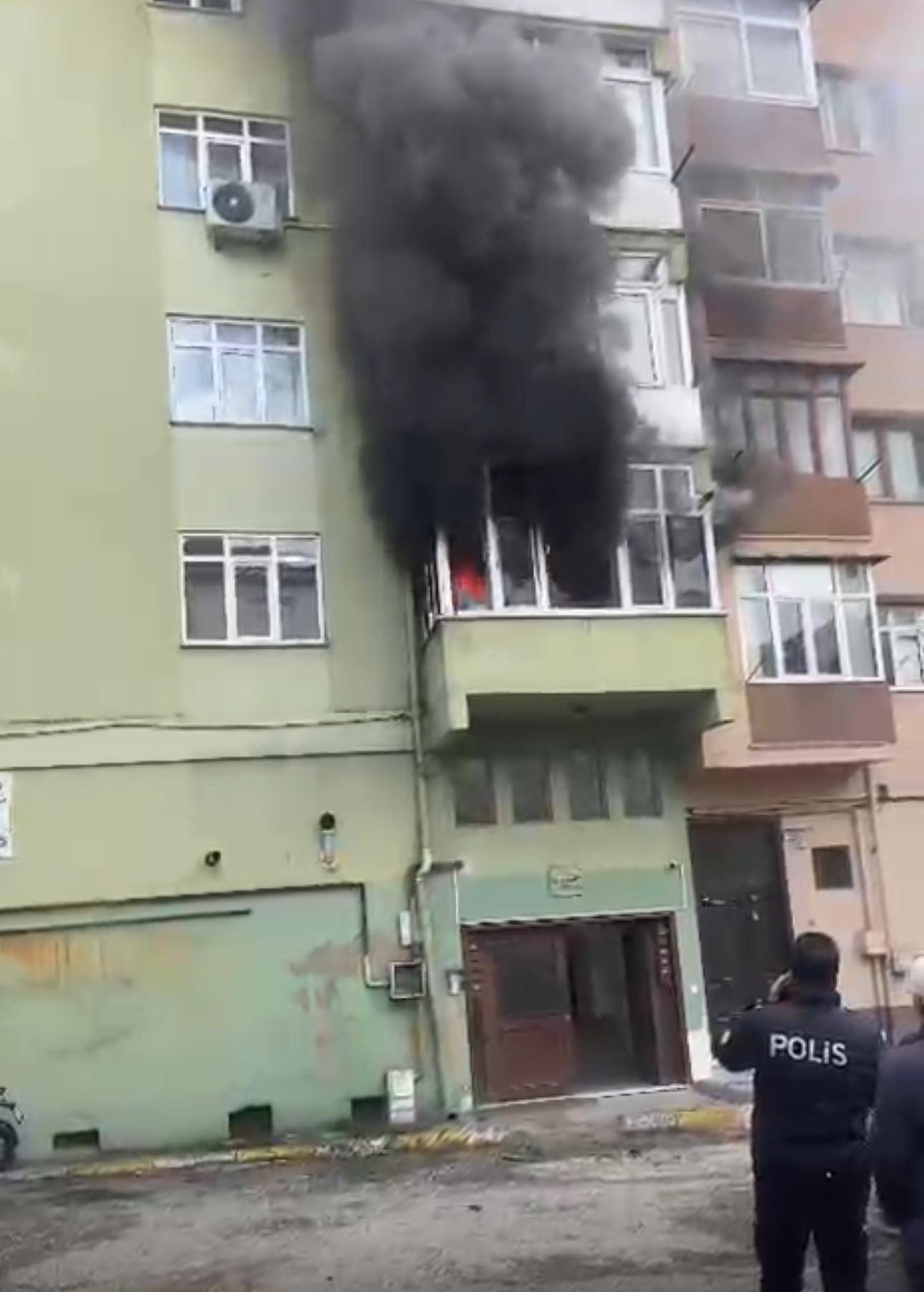 Yoğun dumanın üst katlara yayılması üzerine apartman sakinleri büyük panik yaşadı.