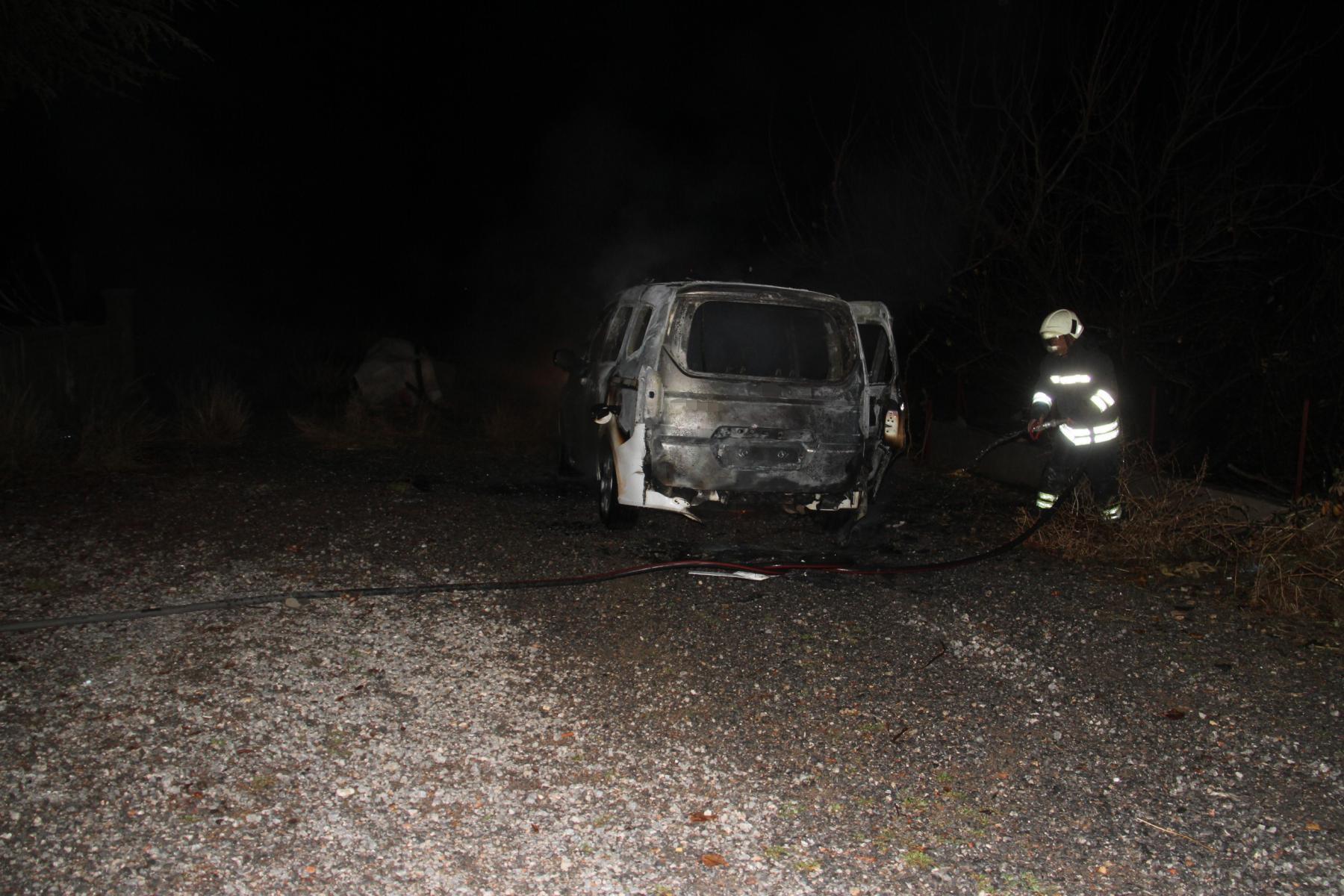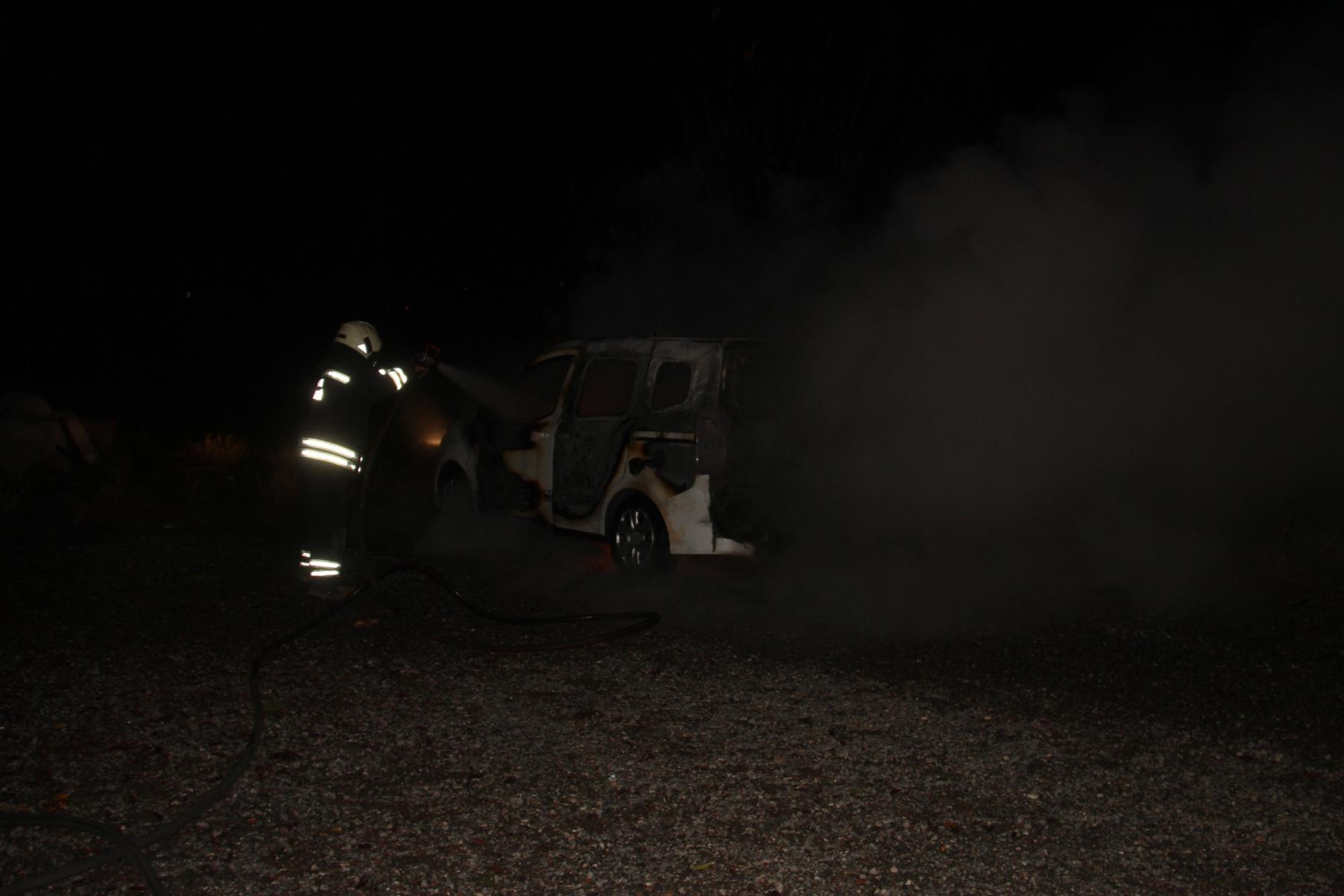 İtfaiye ekipleri boş arsa üzerinde yanan araca müdahale ederek söndürürken, araç kullanılamaz hale geldi.