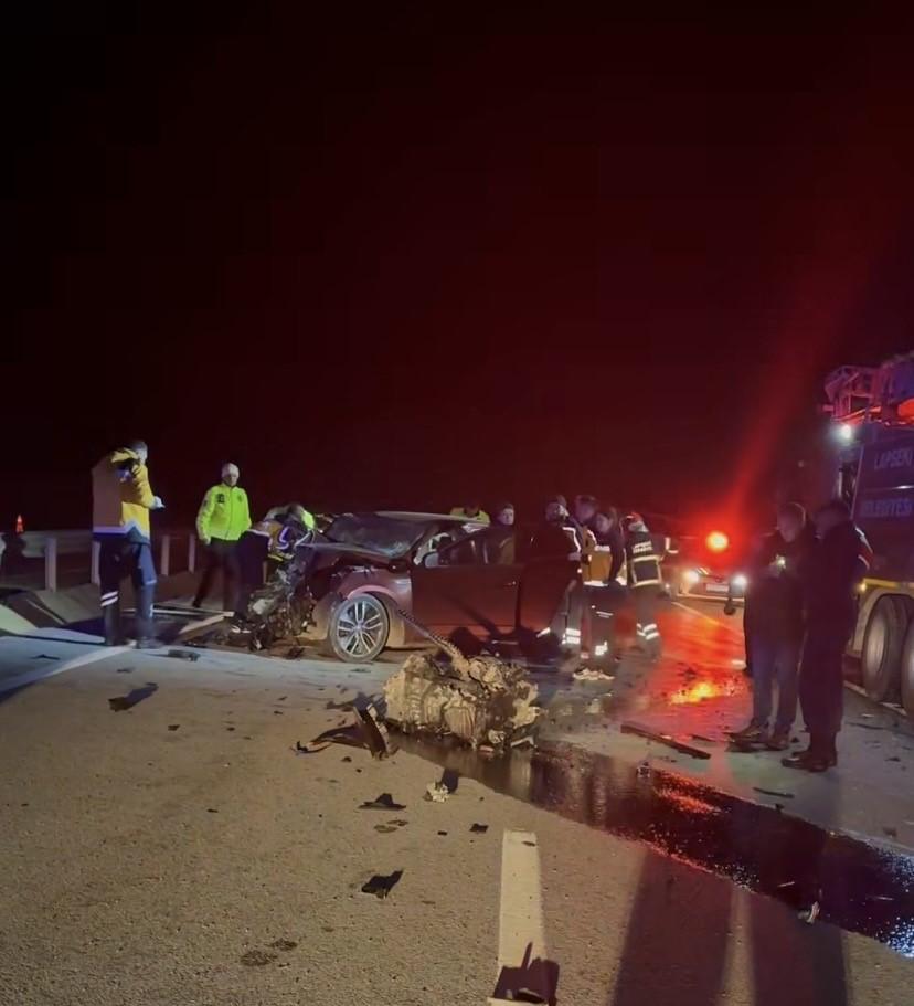 İhbar üzerine olay yerine çok sayıda ambulans ve itfaiye ekibi sevk edildi. Kaza sonucunda iki otomobildeki 5 kişi hayatını kaybederken, 1 kişi ise yaralandı. Kazada, 35 APD 325 araçta bulunan Nuray Tekin, Osman Göksu, Doğuran Samet Eğer hayatını kaybetti.