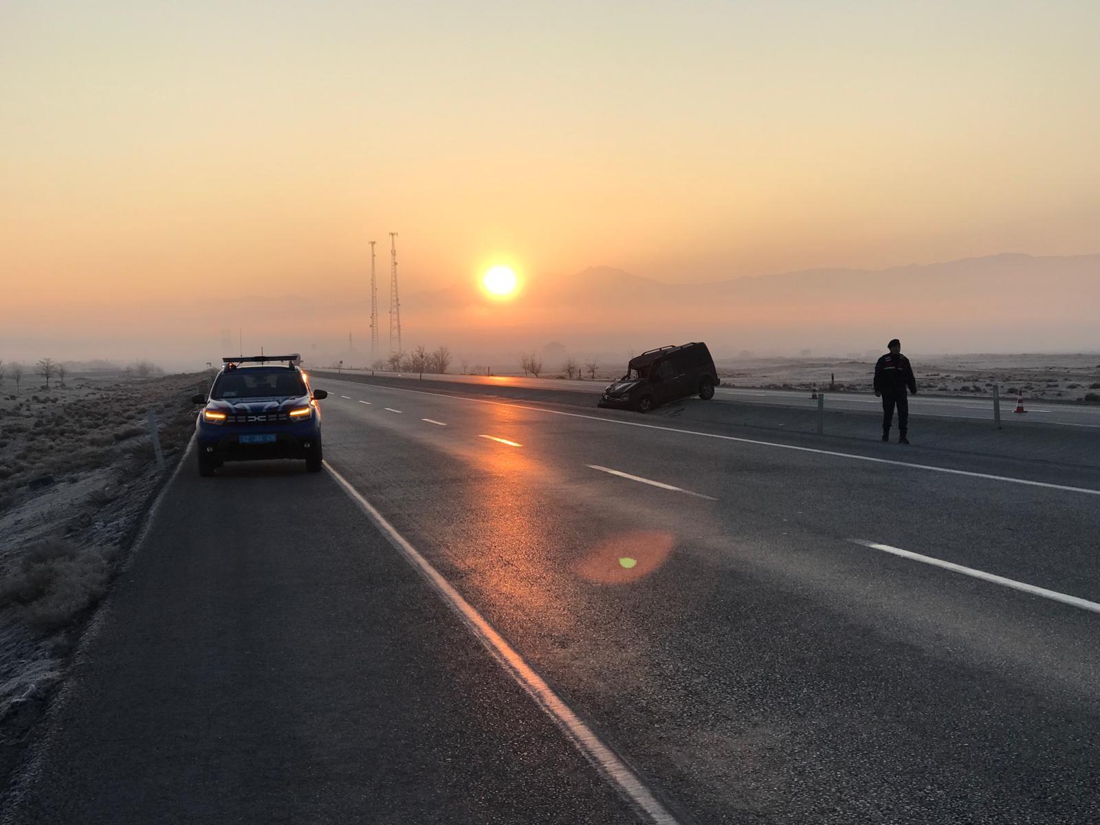 Kaza, Konya Adana Kara yolu Hortu Mahallesi mevkiinde meydana geldi. İddialara göre, sürücüsünün ismi öğrenilemeyen 27 BEE 818 plakalı hafif ticari araç, kontrolden çıkarak takla atıp refüjde durdu.