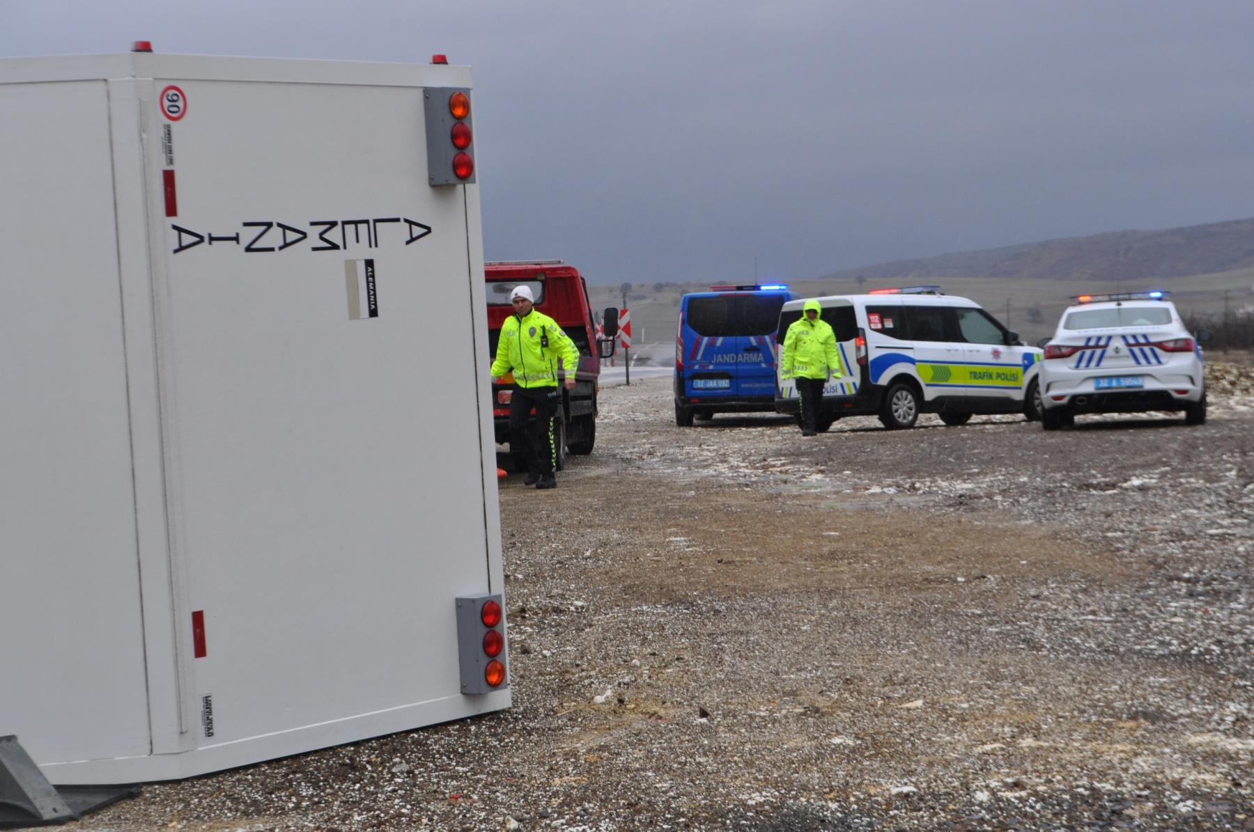 Çarpışmanın etkisiyle yoldan çıkan karavan bir süre sonra şarampolde yan yattı. Kazada otomobil sürücüsü İsmail Ü. ile araçta yolcu olarak bulunan Fatma Ü. hafif yaralanırken, Melek Ü. ağır yaralandı. Kazayı gören vatandaşların ihbarı üzerine olay yerine jandarma ve sağlık ekipleri sevk edildi.