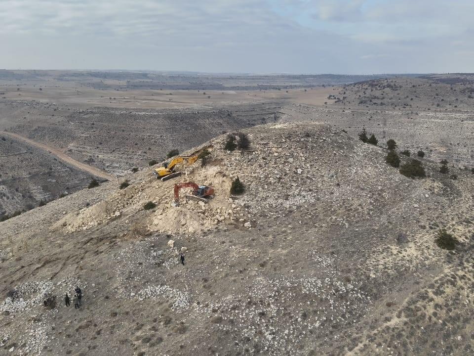 Cumhuriyet Başsavcılığının talimatıyla harekete geçen ekipler, dronla kaçak kazı yapan şüphelileri tespit edip operasyon için düğmeye bastı.