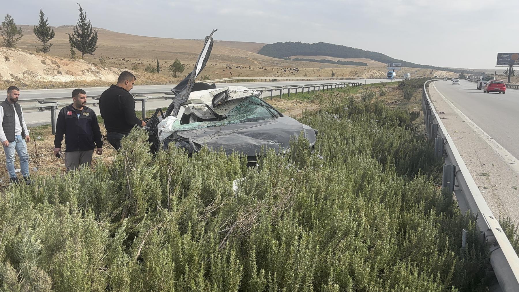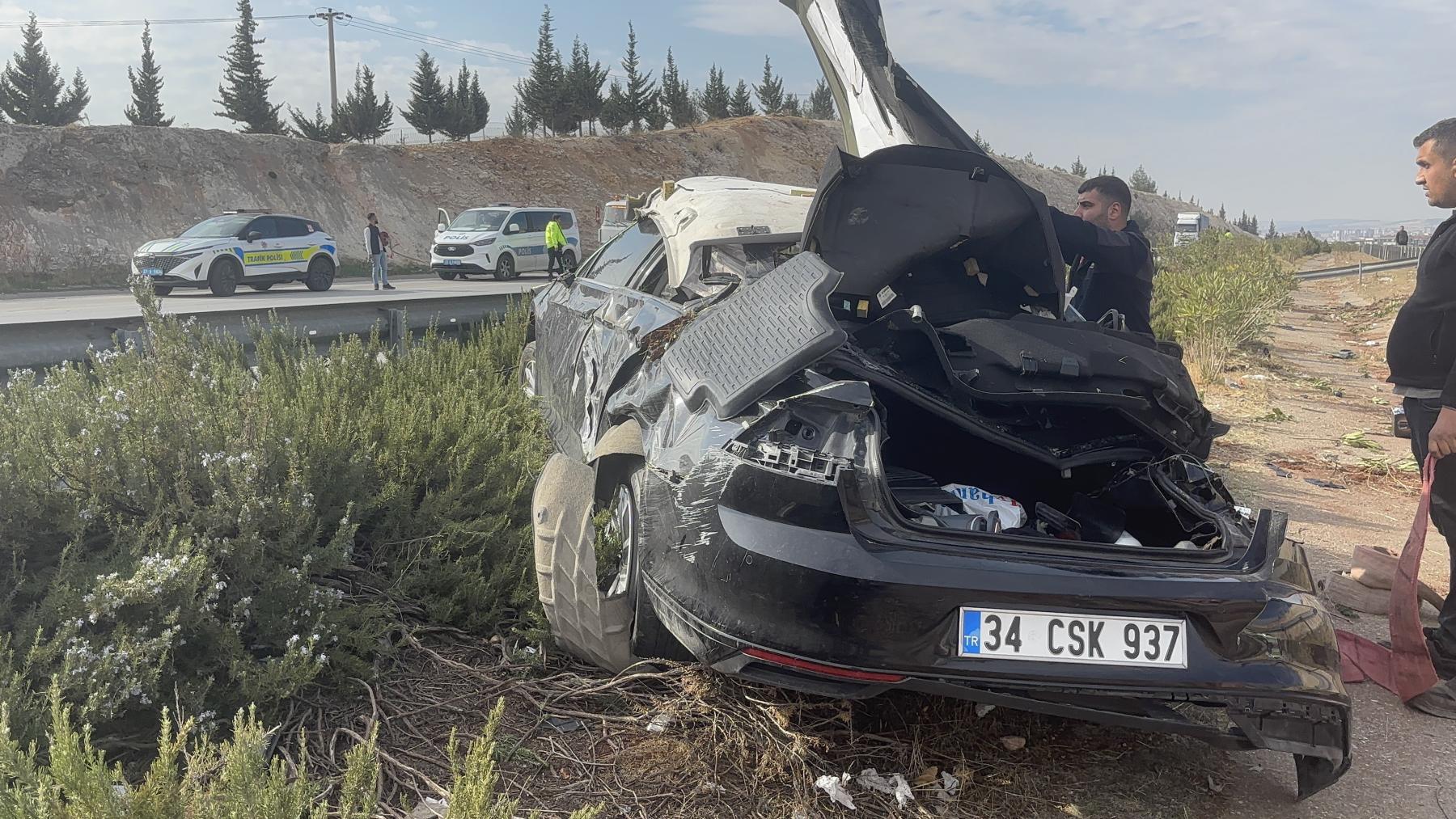 Bariyerlere çarpan otomobil taklalar attıktan sonra orta refüje uçtu.