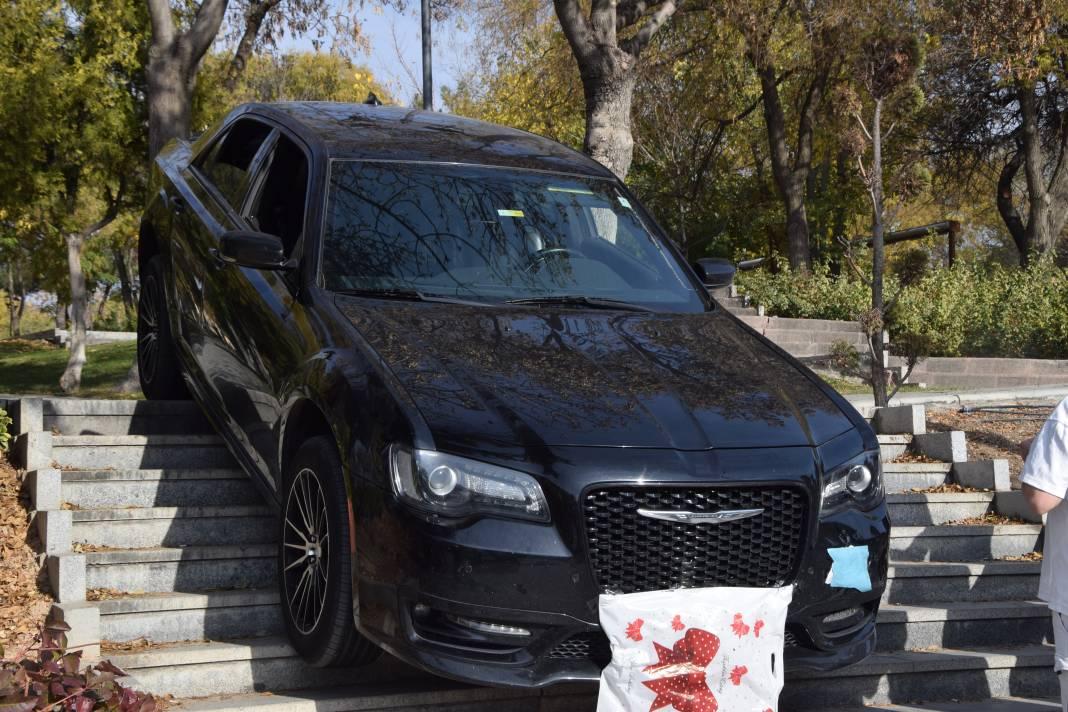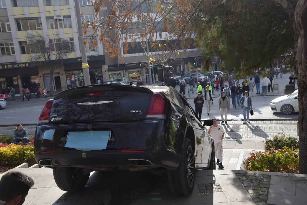 Konya’nın merkezinde bulunan Alaaddin Tepesi merdivenlerinde bir otomobil, merdivenlerin üzerinde asılı halde kaldı.