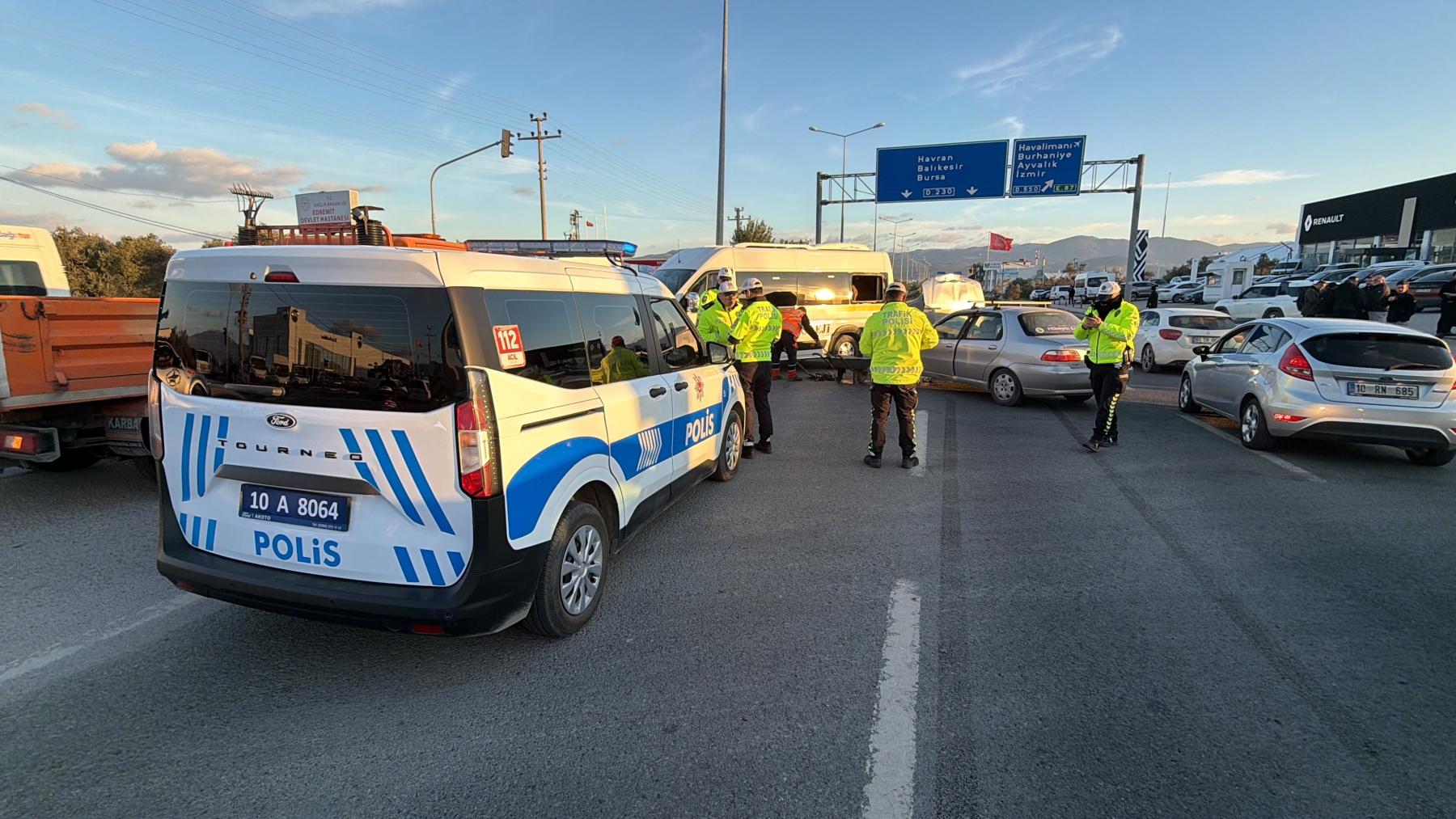 Kaza nedeniyle E-87 Balıkesir-Çanakkale kara yolunda uzun araç kuyrukları oluştu.