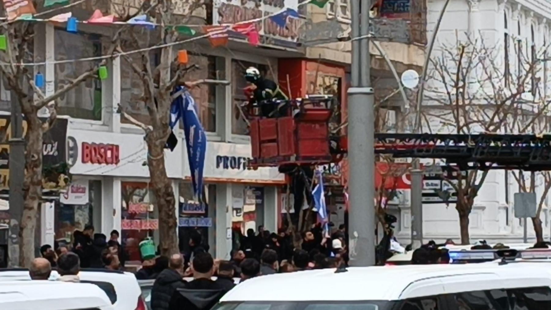 Dernek üyeleri ve bazı vatandaşlar pankartın indirilmesine karşı çıkınca kısa süreli gerginlik yaşandı.