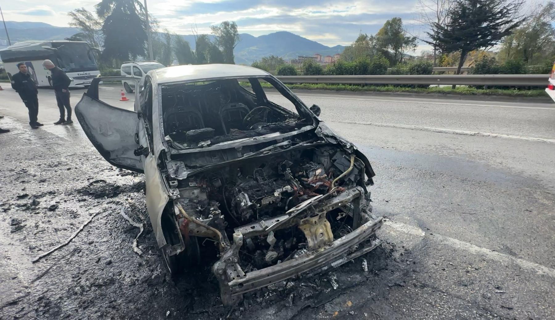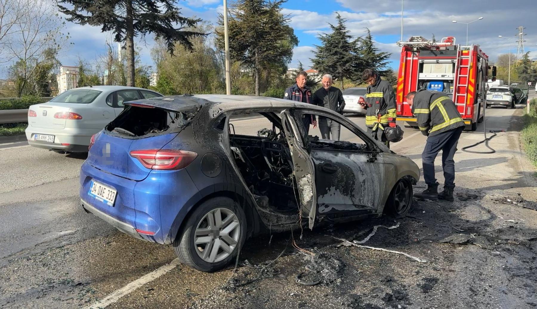 Otomobil kısa sürede alev topuna döndü.