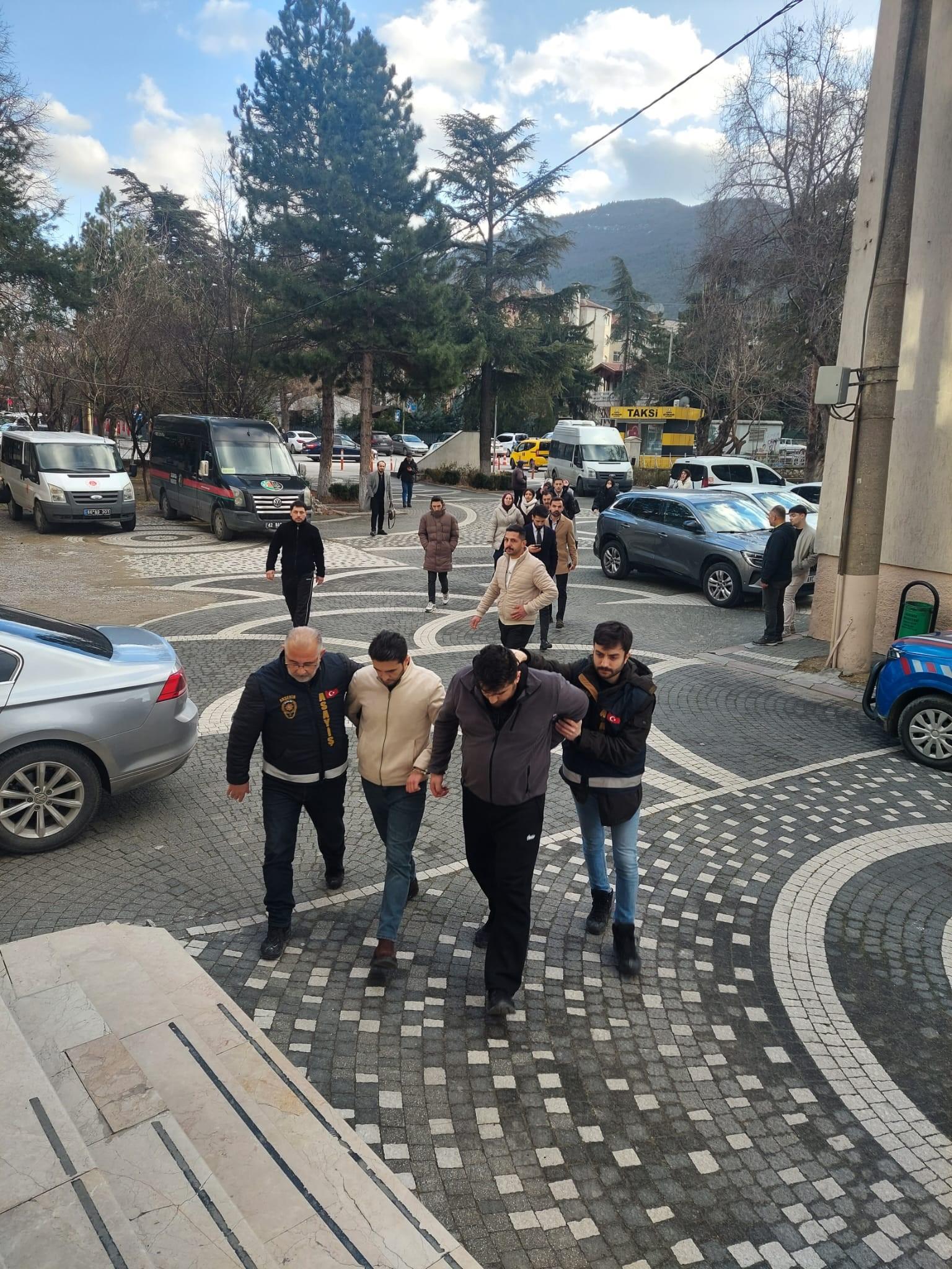 Operasyonda 6 şüpheli gözaltına alındı. Emniyetteki işlemlerinin ardından adliyeye sevk edilen şüphelilerden C.E., M.T., F.D., B.A., M.C. ve B.G. çıkarıldıkları mahkemece tutuklanarak cezaevine gönderildi.