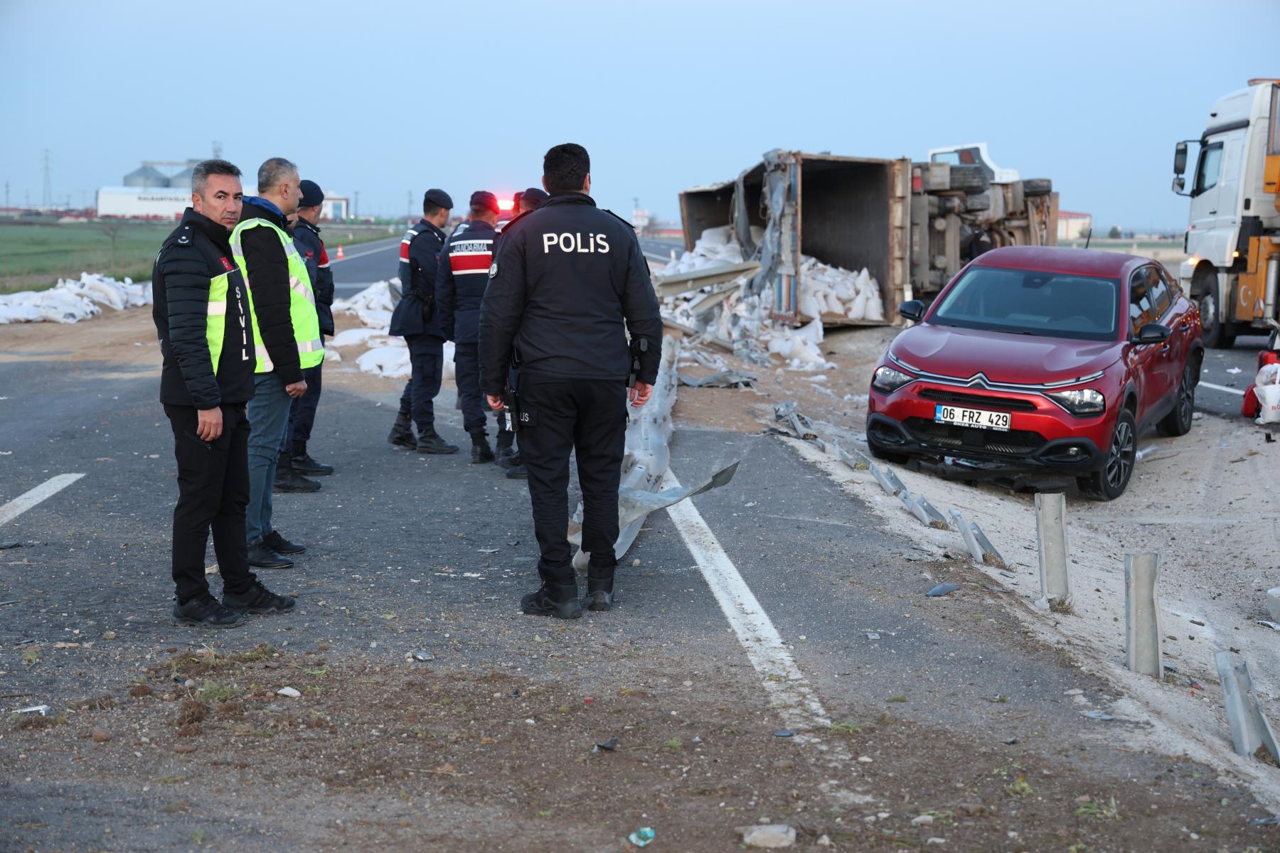 Kaza Aksaray - Konya Karayolu 18. kilometresinde meydana geldi. Edinilen bilgiye göre, Aksaray’dan Konya istikametine seyreden Mustafa C. (52) idaresindeki 42 AKK 368 plakalı hayvan yemi yüklü tır, sürücüsünün direksiyon hakimiyetini kaybetmesi sonucu kontrolden çıkarak refüje devrildi.