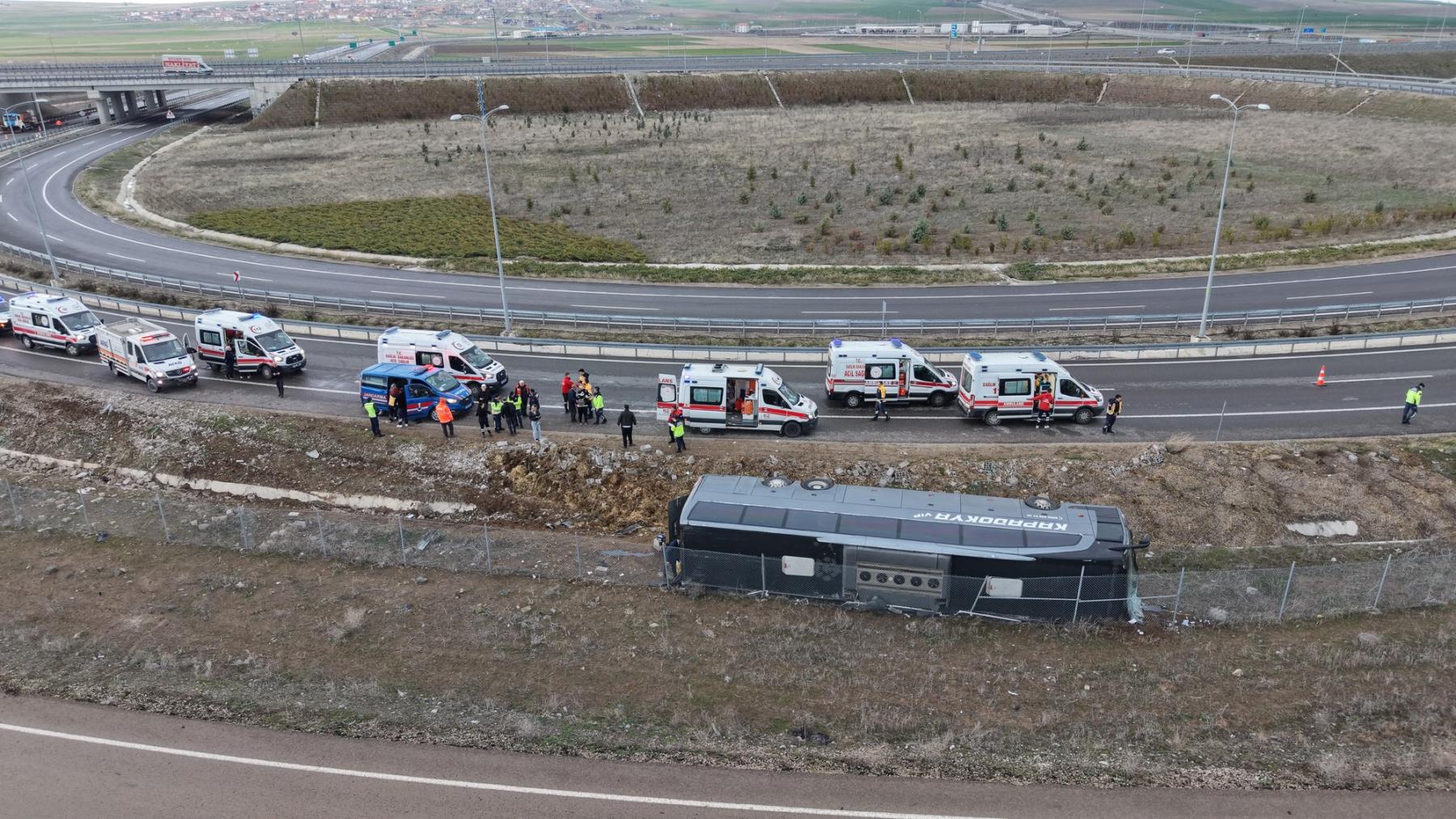 Burada otoyol bağlantı yoluna giren otobüs virajı alamayarak şarampole devrildi. 20 yolcu, otobüs şoför ve muavini 3 kişi olmak üzere otobüsteki herkes yaralanırken, kazayı gören diğer sürücüler durumu 112 Acil Çağrı Merkezine bildirdi.