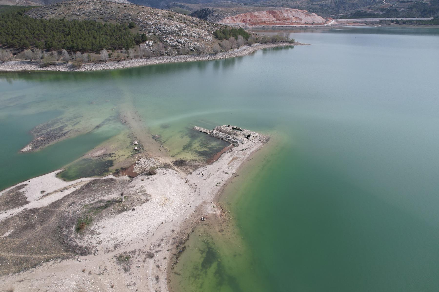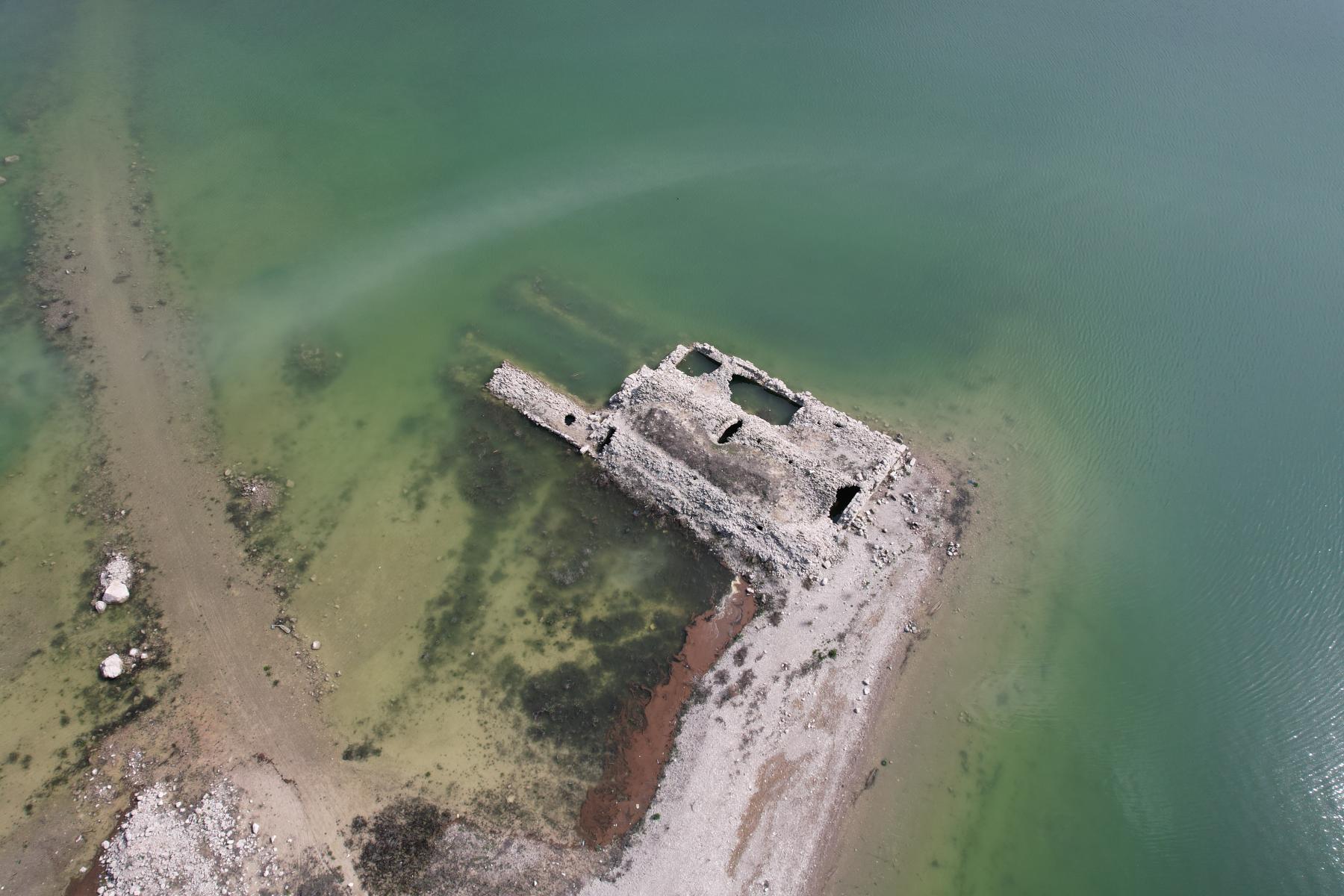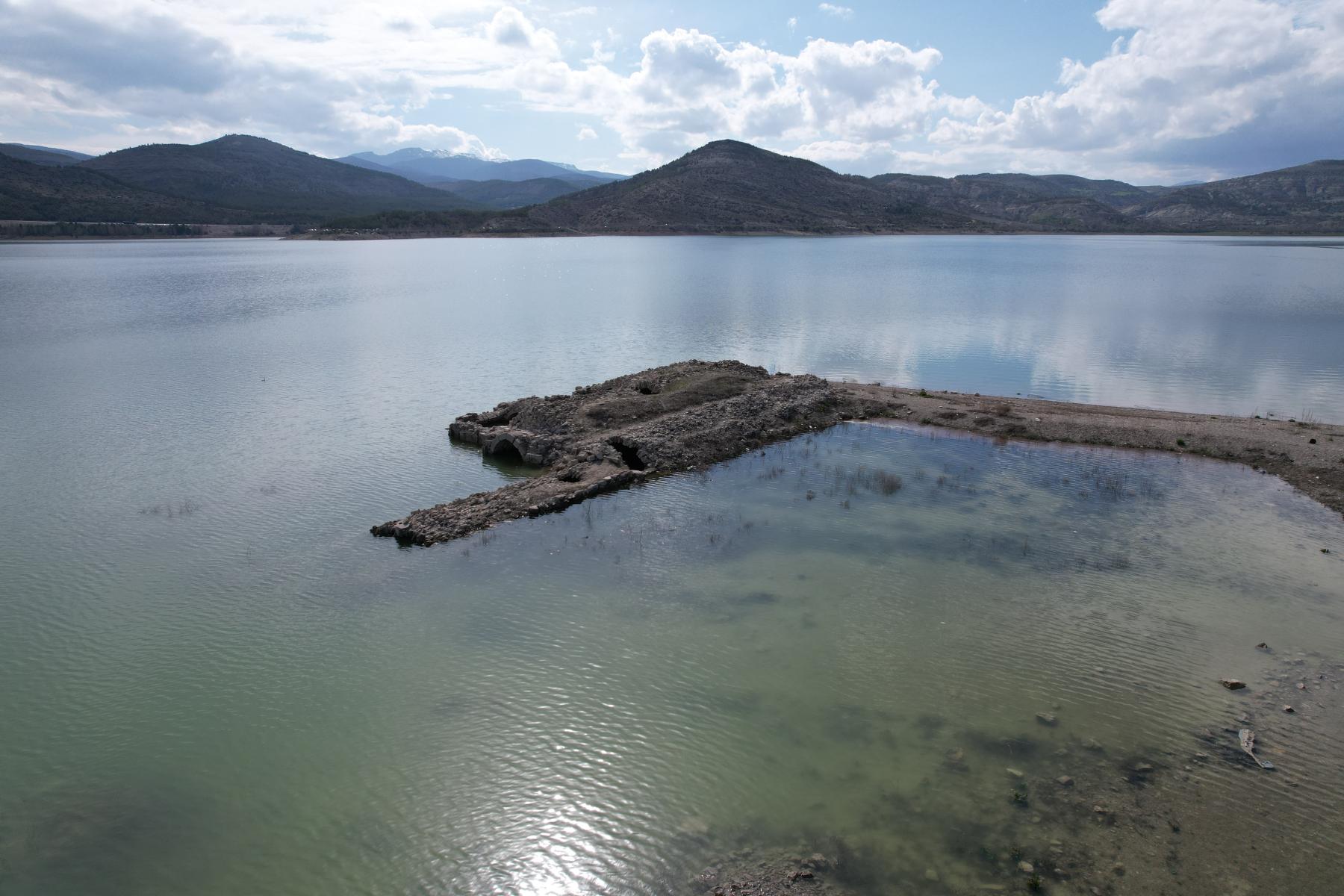 Altınapa Barajı’nda su seviyesi arttı, tarihi hanın bir kısmı yeniden sular altında kaldı