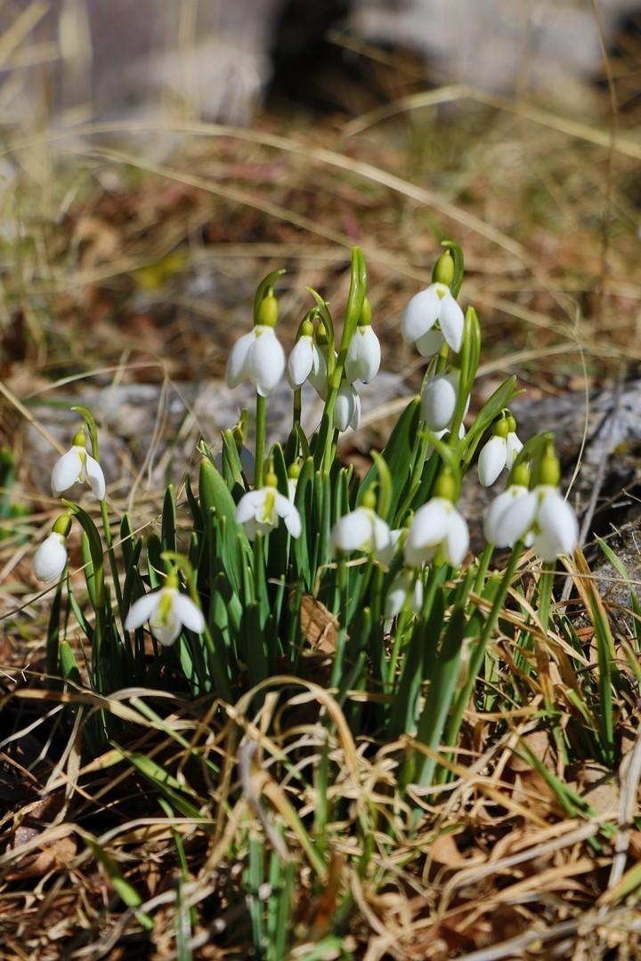 Baharın müjdecisi olarak bilinen kardelenler, Hadim ilçesinde bazı yüksek kesimlerde beyaz çiçekleriyle bölgeyi renklendirdi.