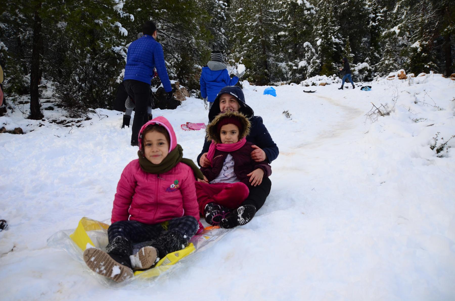 Beklenmedik kar yağışını fırsata çeviren bazı vatandaşlar ise Alacabel'de karın keyfini çıkardı. Kartopu oynayan ve karda kayan vatandaşlar, Nisan ayında yağan karın tadını doyasıya yaşadı.