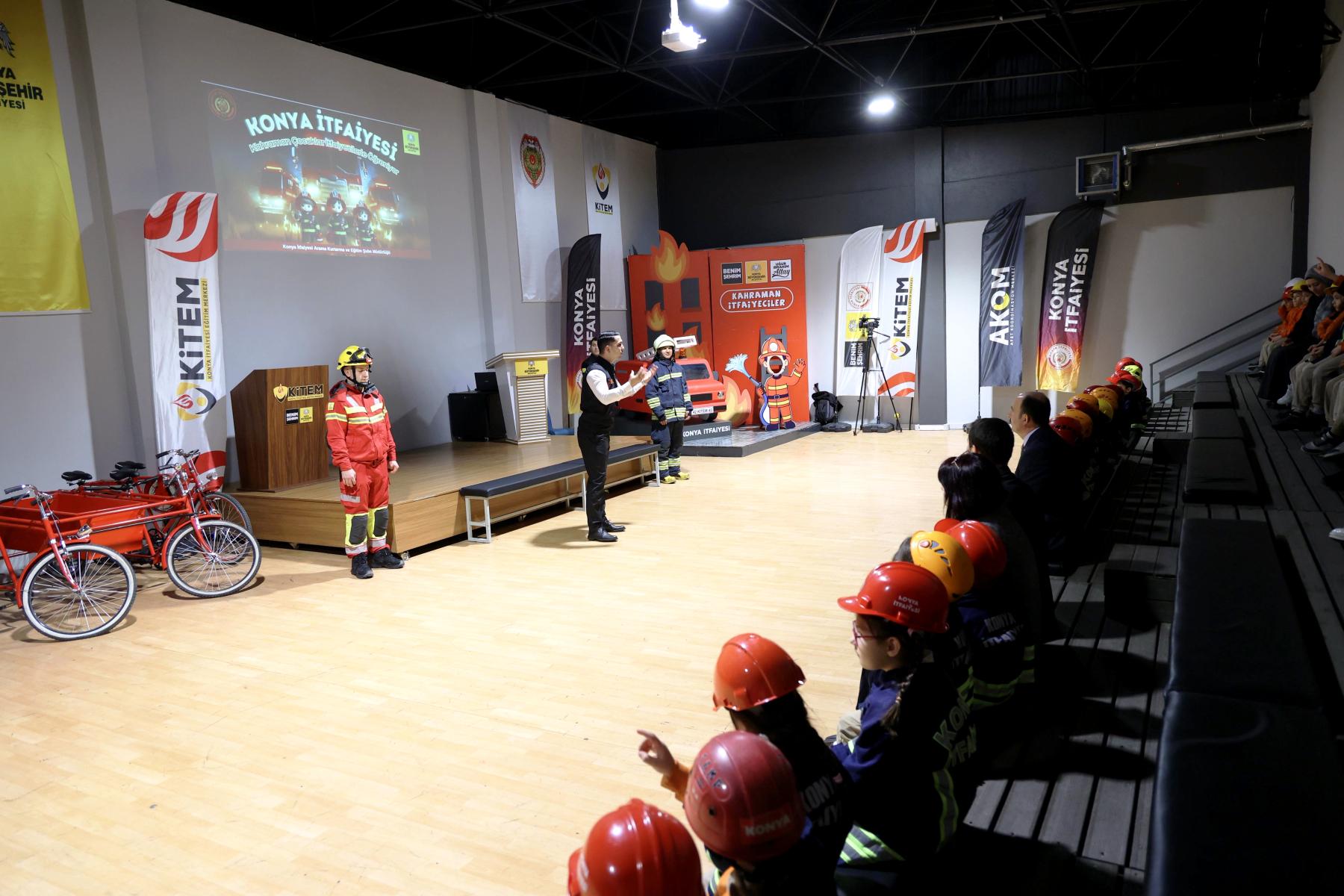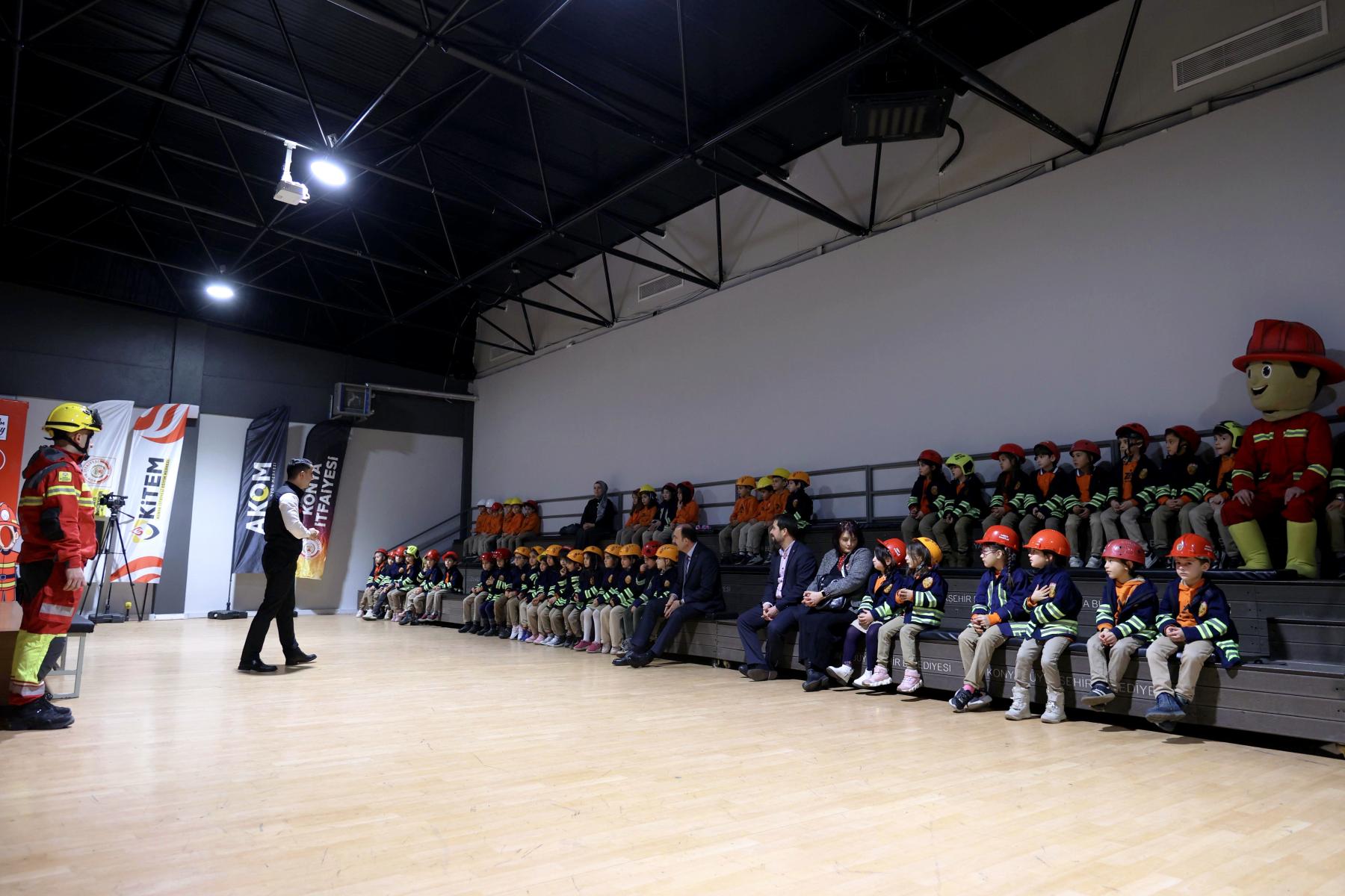 Konya Büyükşehir Belediyesi’nin İl Milli Eğitim Müdürlüğü ile birlikte 31 ilçede yürüttüğü “Kahraman Çocuklar İtfaiyecilerle Öğreniyor Projesi” ile 2021 yılından bu yana kurumsal bir eğitim programıyla ilkokul 1. sınıf öğrencilerine afet bilinci, güvenli yaşam kültürü ve temel yangın farkındalığı kazandırılıyor.