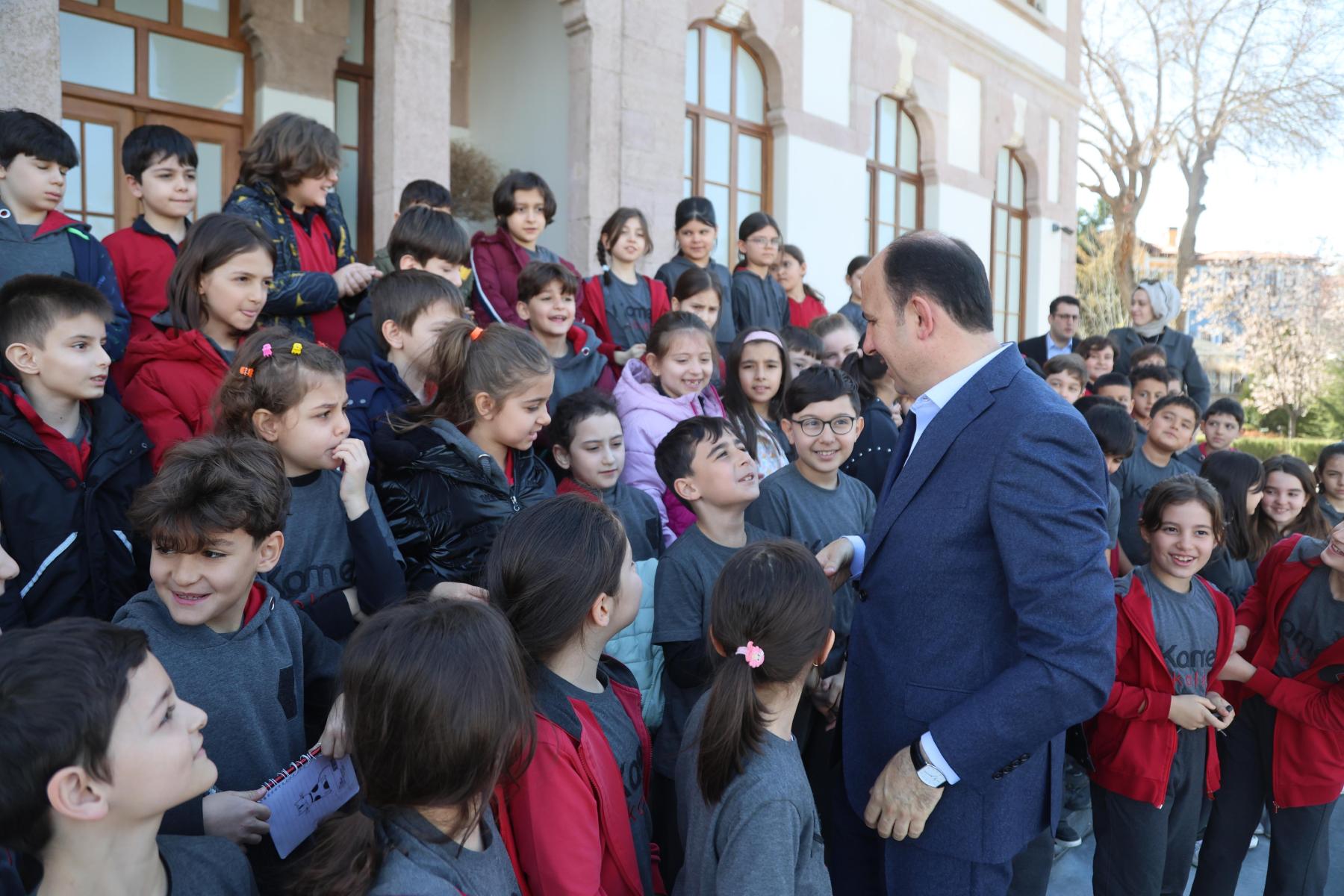Konya Büyükşehir Belediye Başkanı Uğur İbrahim Altay, Taş Bina Dijital Tanıtım Merkezi'ni ziyarete gelen, farklı okullarda öğrenim gören 3. ve 5. sınıf öğrencileriyle buluştu.