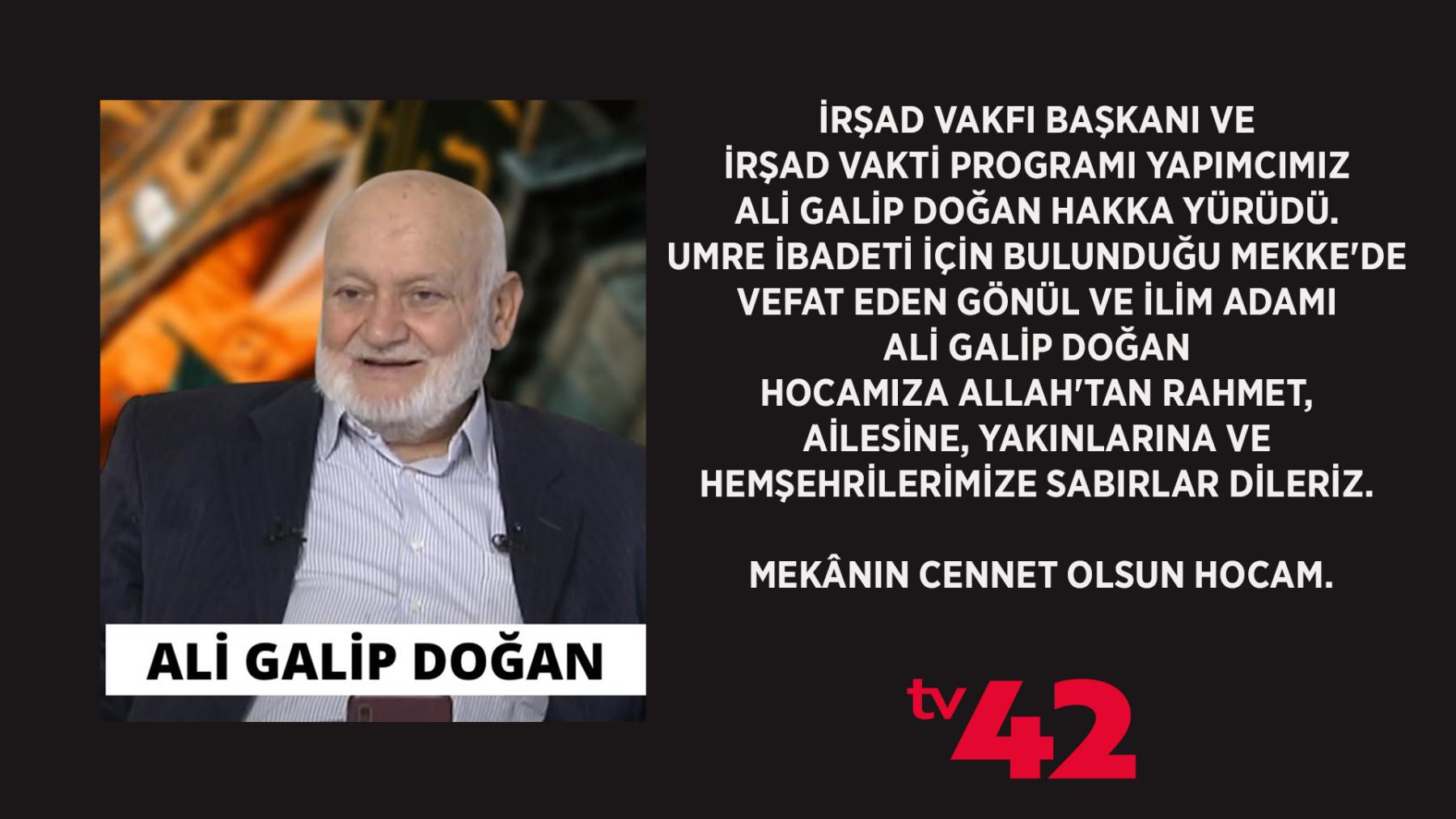 TV42 ekranlarında yıllarca süren hizmetiyle gönüllere dokunan Ali Galip Doğan’a Allah’tan rahmet, ailesine ve sevenlerine başsağlığı diliyoruz.