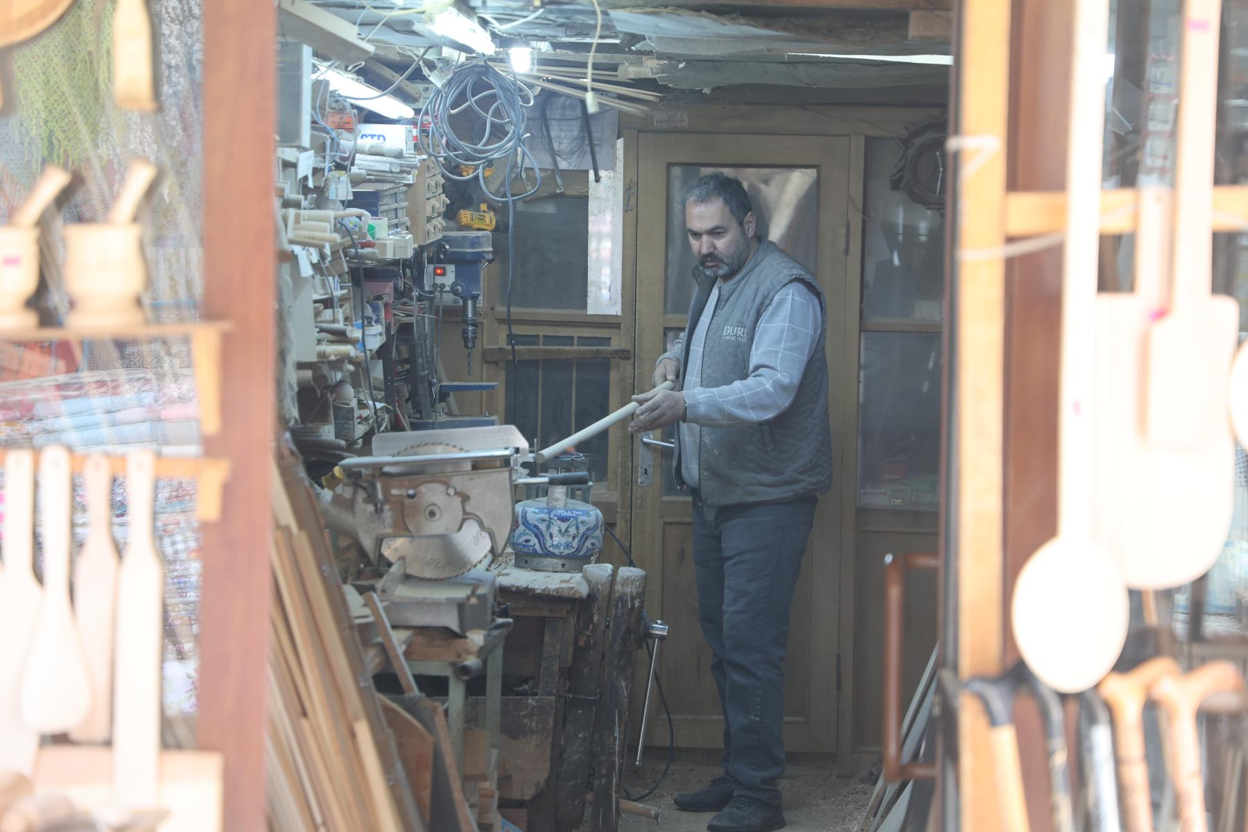 Konya'da bulunan Tarihi Bedesten Çarşısı'nda ahşap ustalığı yapan 77 yaşındaki Muzaffer Büyüközkan ile 50 yaşındaki oğlu İsmail Büyüközkan, mesleklerini birlikte sürdürüyor. Baba oğul küçük dükkanlarında, Konya'da çok yaygın olan etliekmek fırınlarında kullanılan fırın kürekleri başta olmak üzere, evde kullanılan yer sofrası, merdane, oklava, tahta kaşık gibi mutfak malzemeleri, çocuklar için ahşap oyuncaklar, takunya ve baston yaparak ahşaptan ürünler üretiyor.