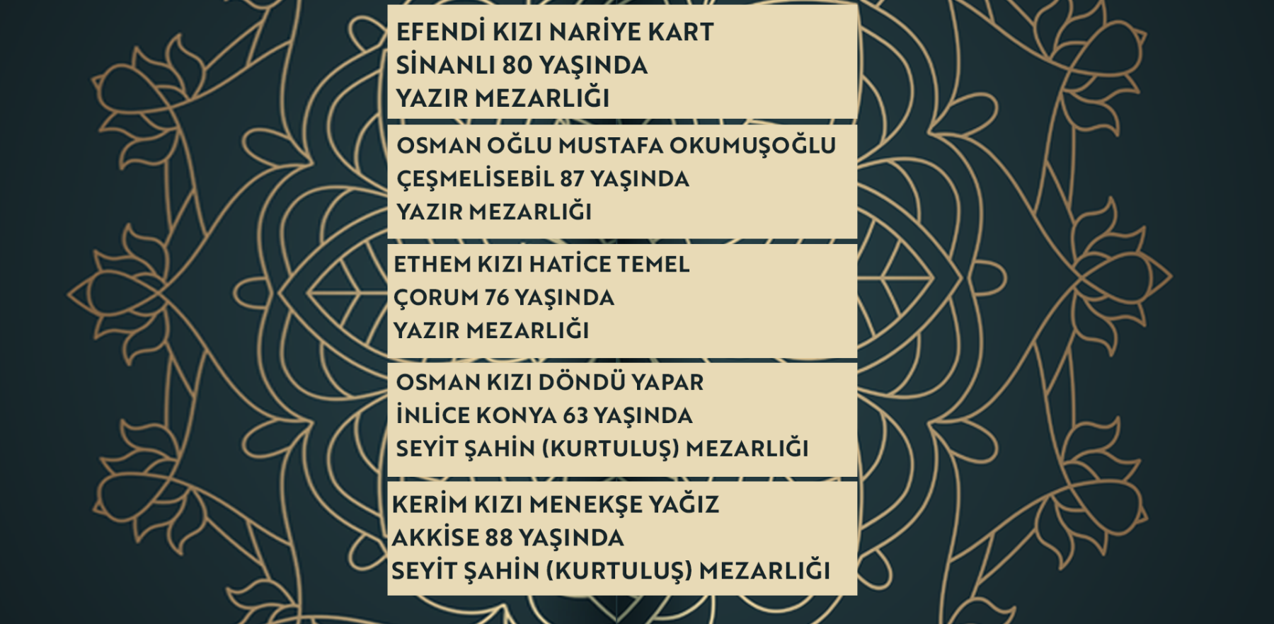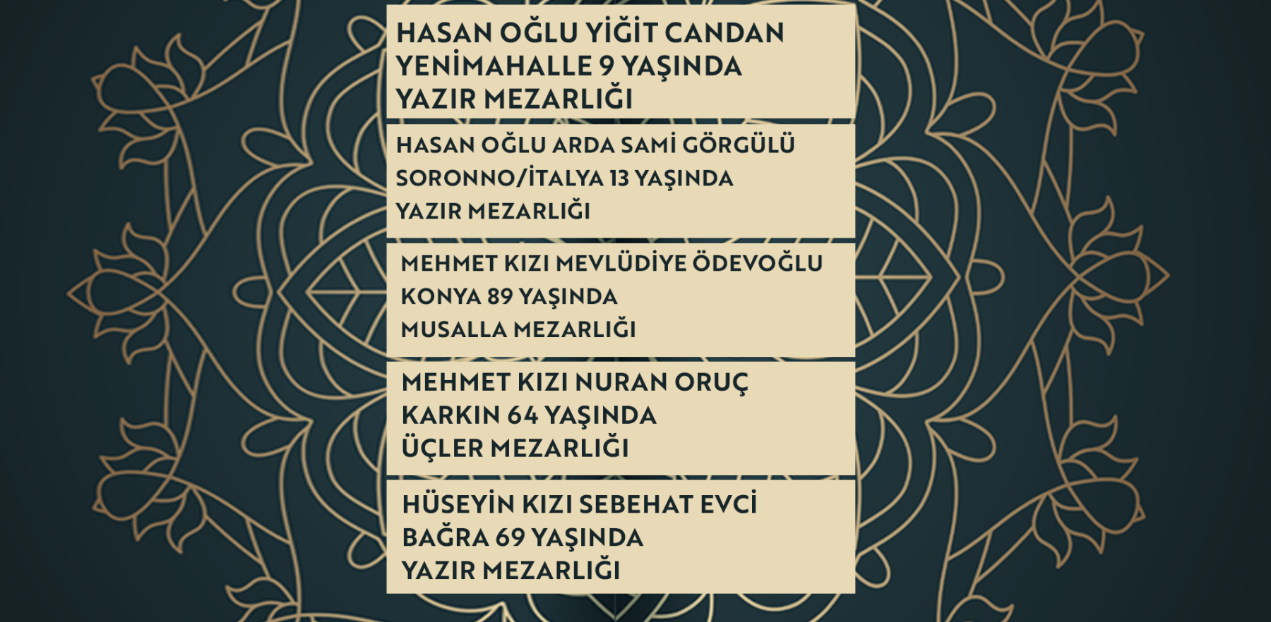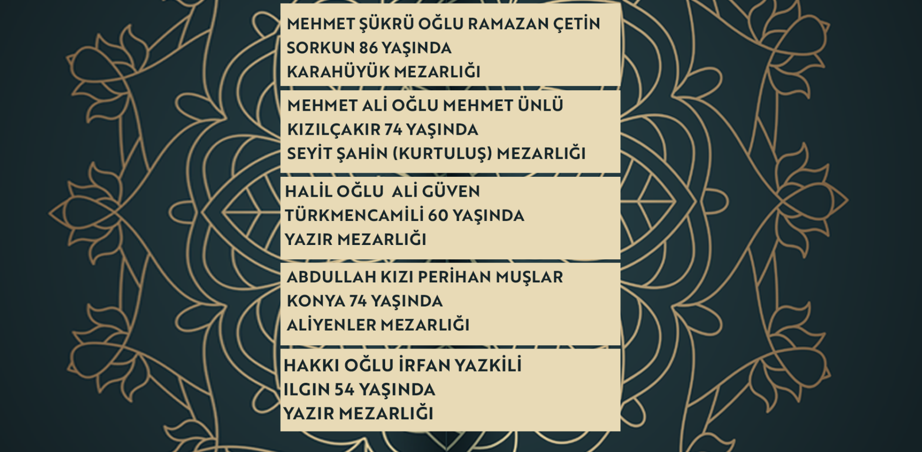 Bugün Konya’da hayatını kaybeden 15 kişi toprağa verildi. İşte 10 Mart Salı günü vefat edenler ve cenaze bilgileri.
