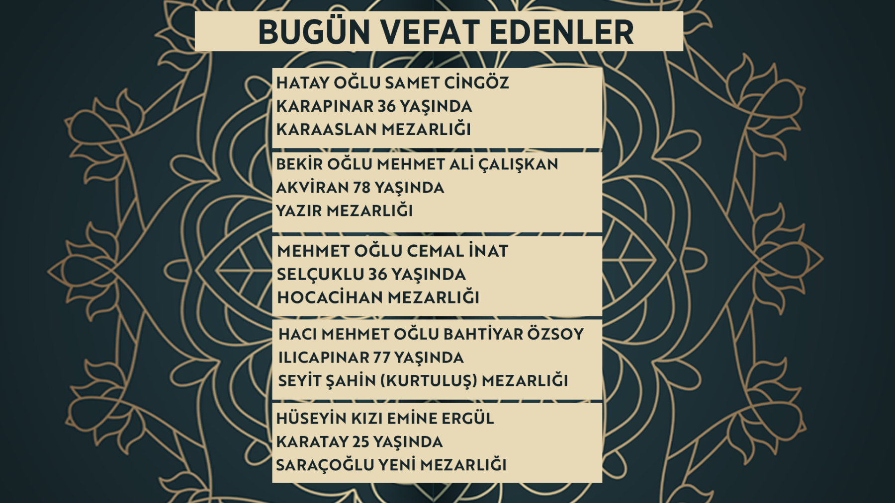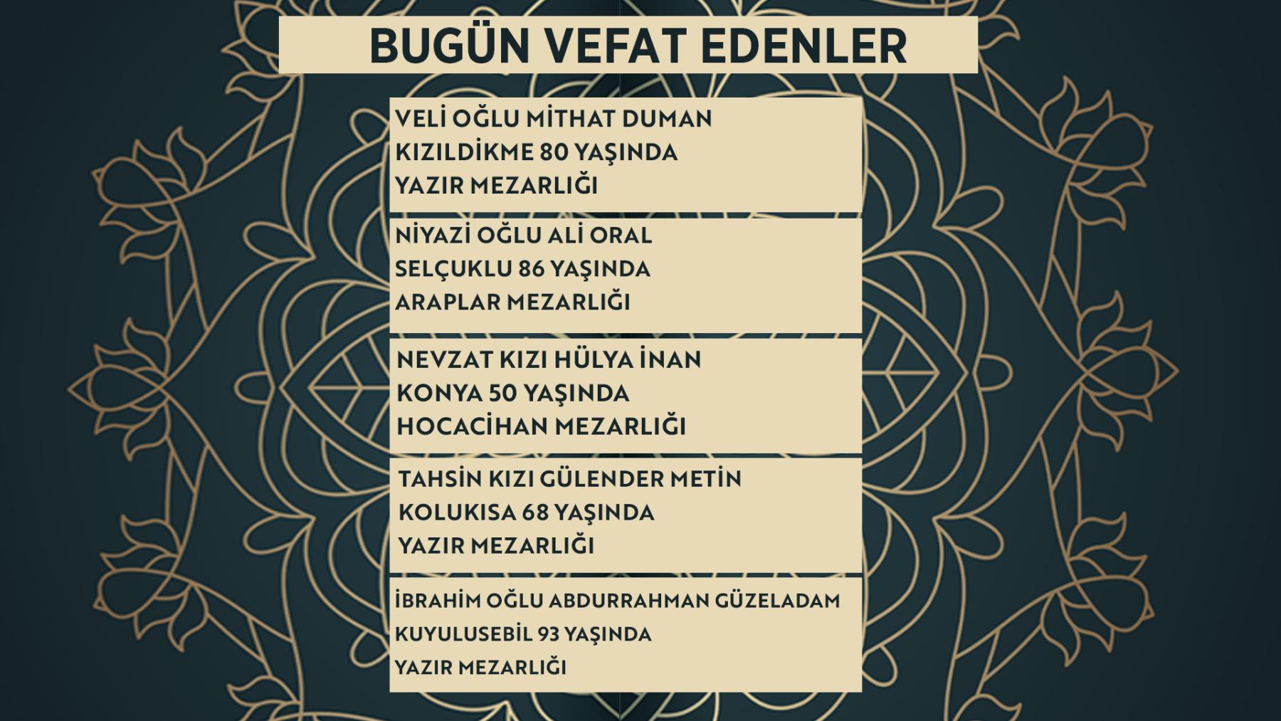 Konya'da bugün vefat edenler | 13 Mart 2026
