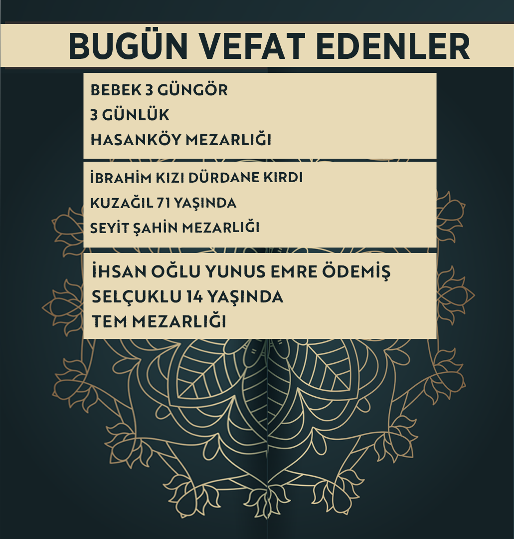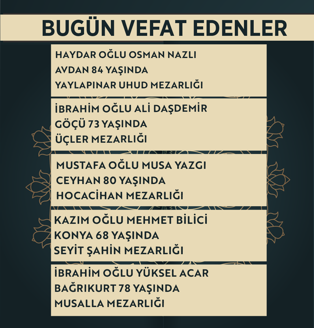 Konya'da bugün vefat edenler | 2 Nisan 2026