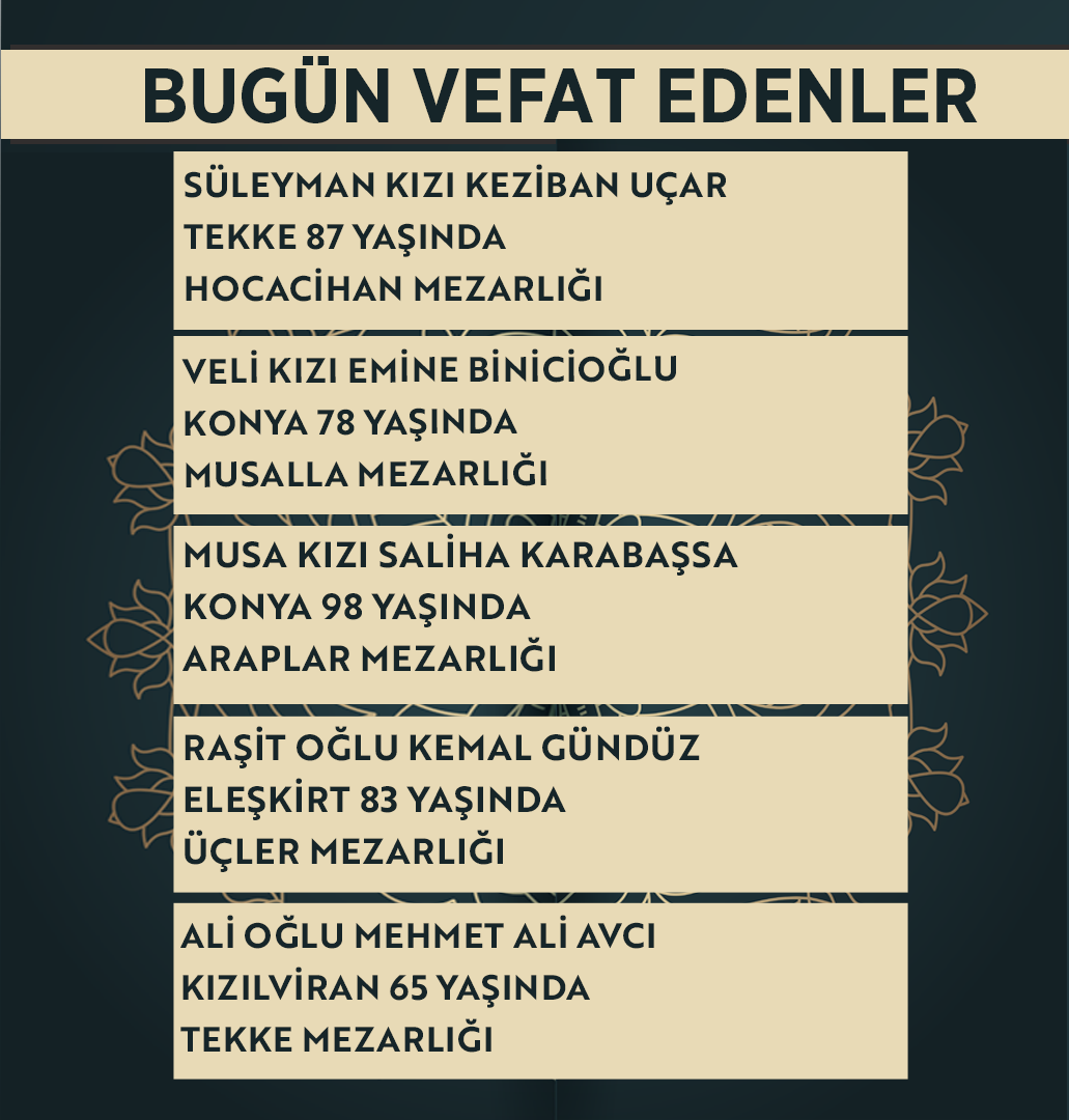 Konya'da bugün vefat edenler | 21 Nisan 2026