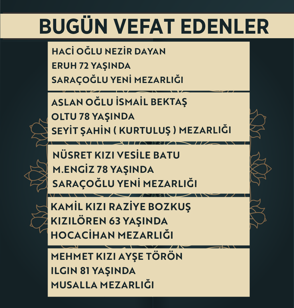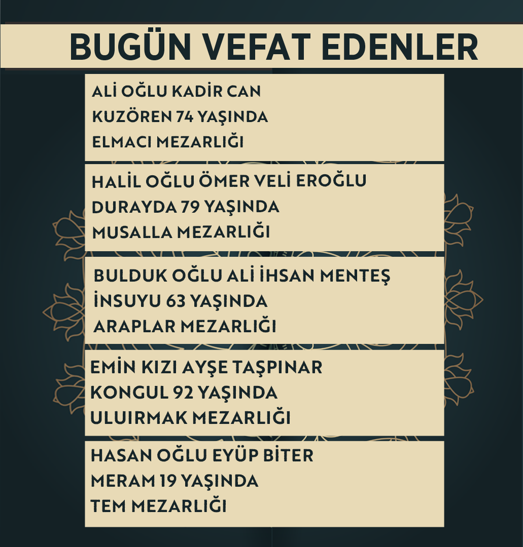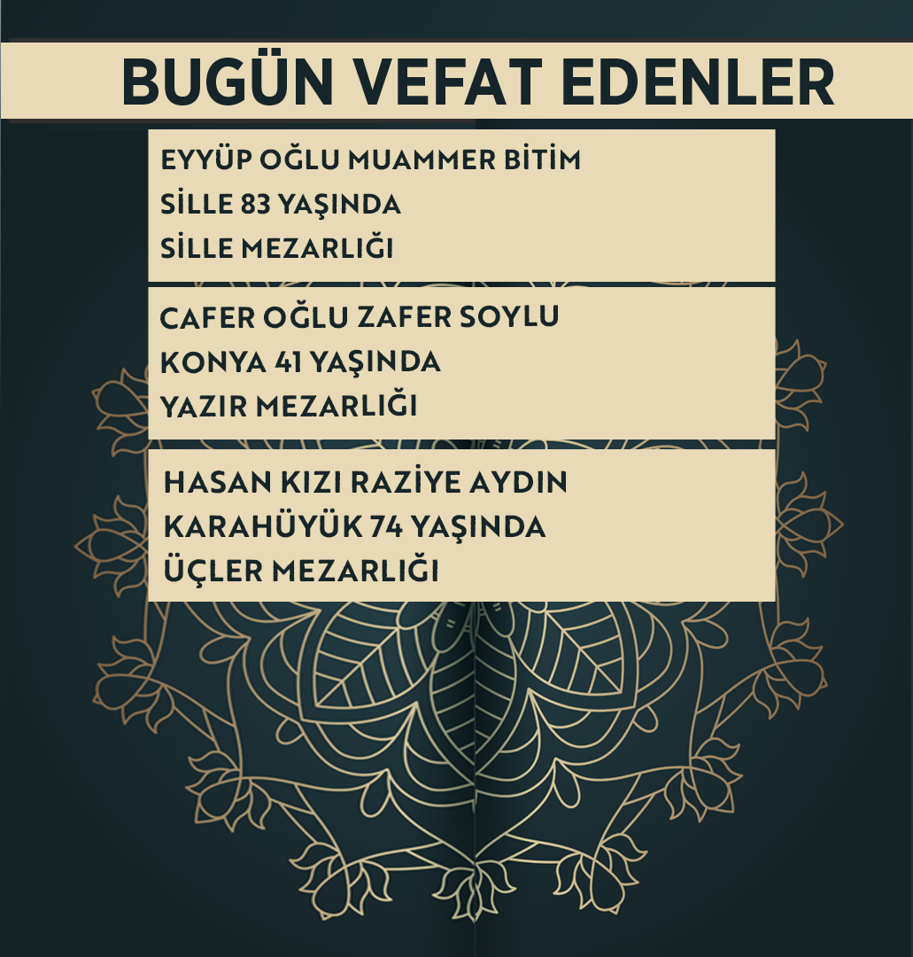Bugün Konya’da hayatını kaybeden 13 kişi toprağa verildi. İşte 22 Nisan Çarşamba günü vefat edenler ve cenaze bilgileri.