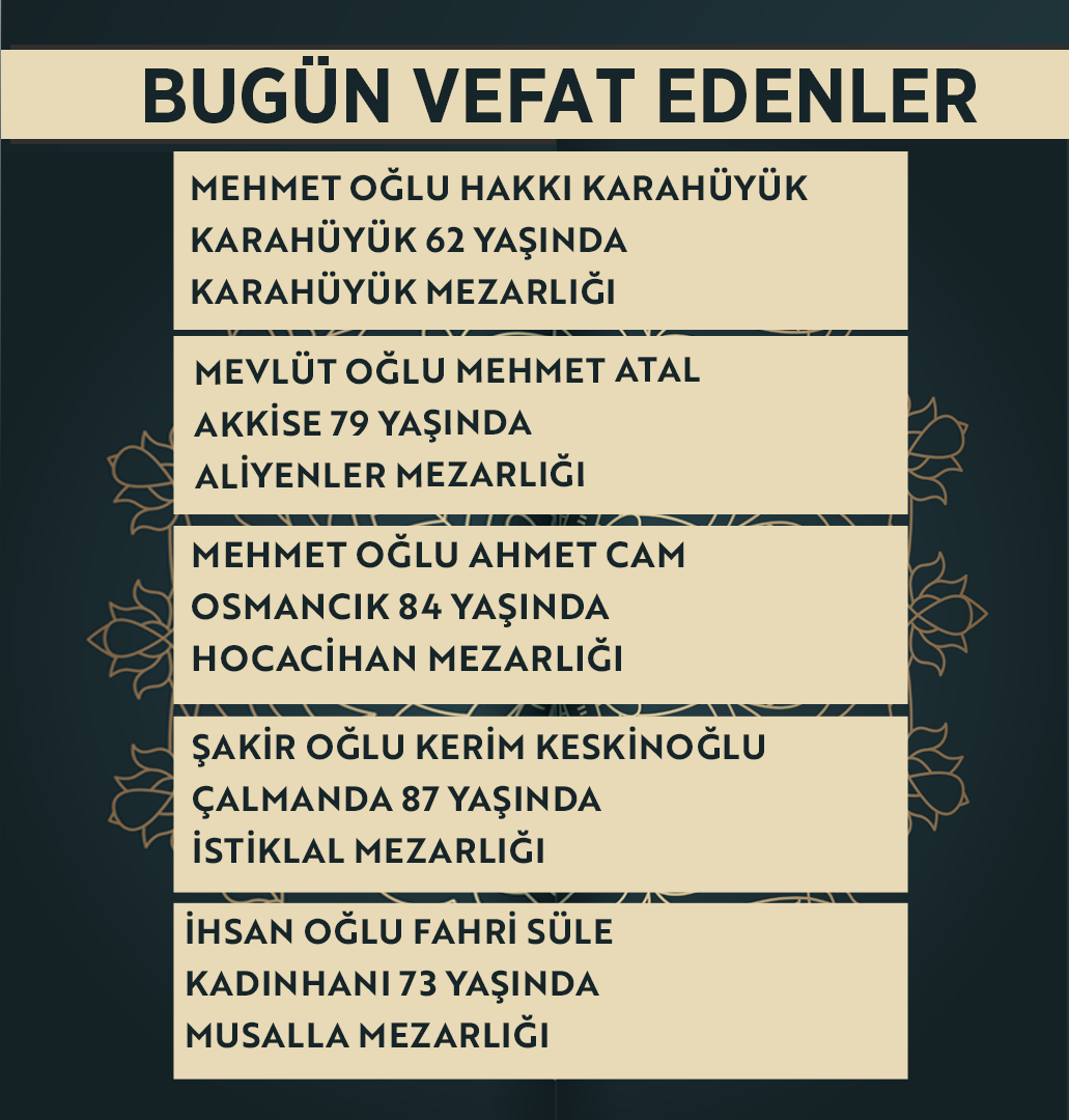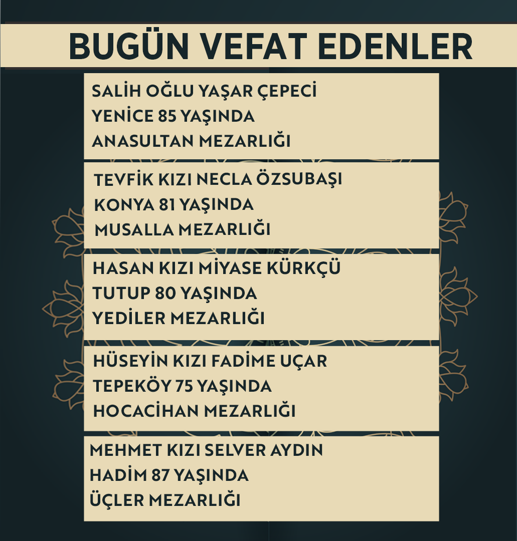 Bugün Konya’da hayatını kaybeden 11 kişi toprağa verildi. İşte 23 Mart Pazartesi günü vefat edenler ve cenaze bilgileri.