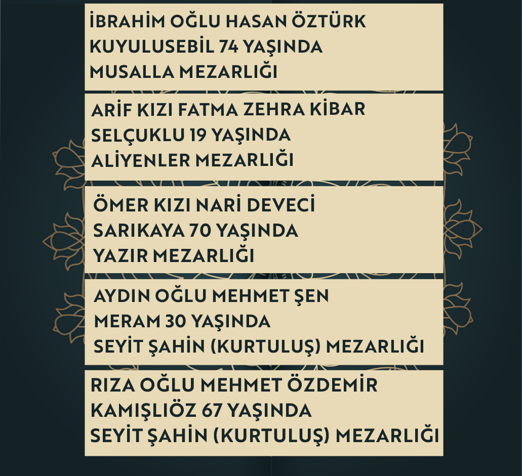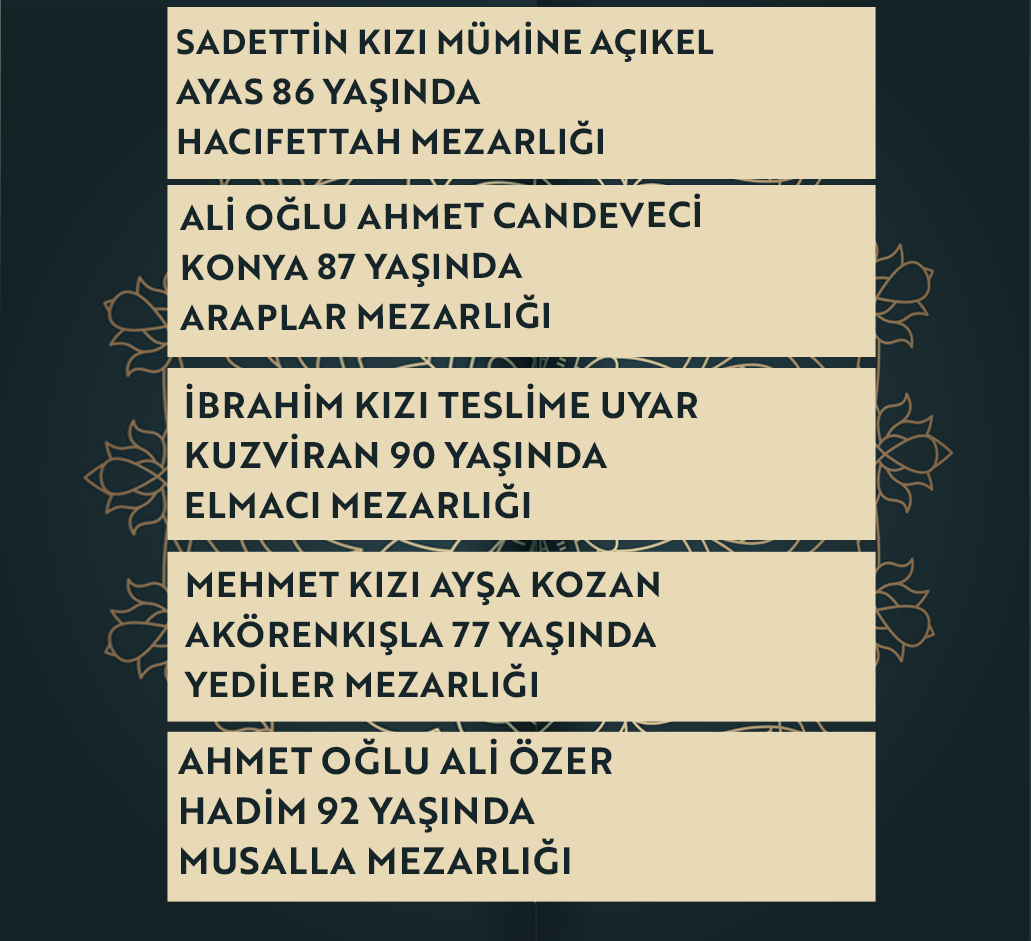 Konya'da bugün vefat edenler | 24 Şubat 2026