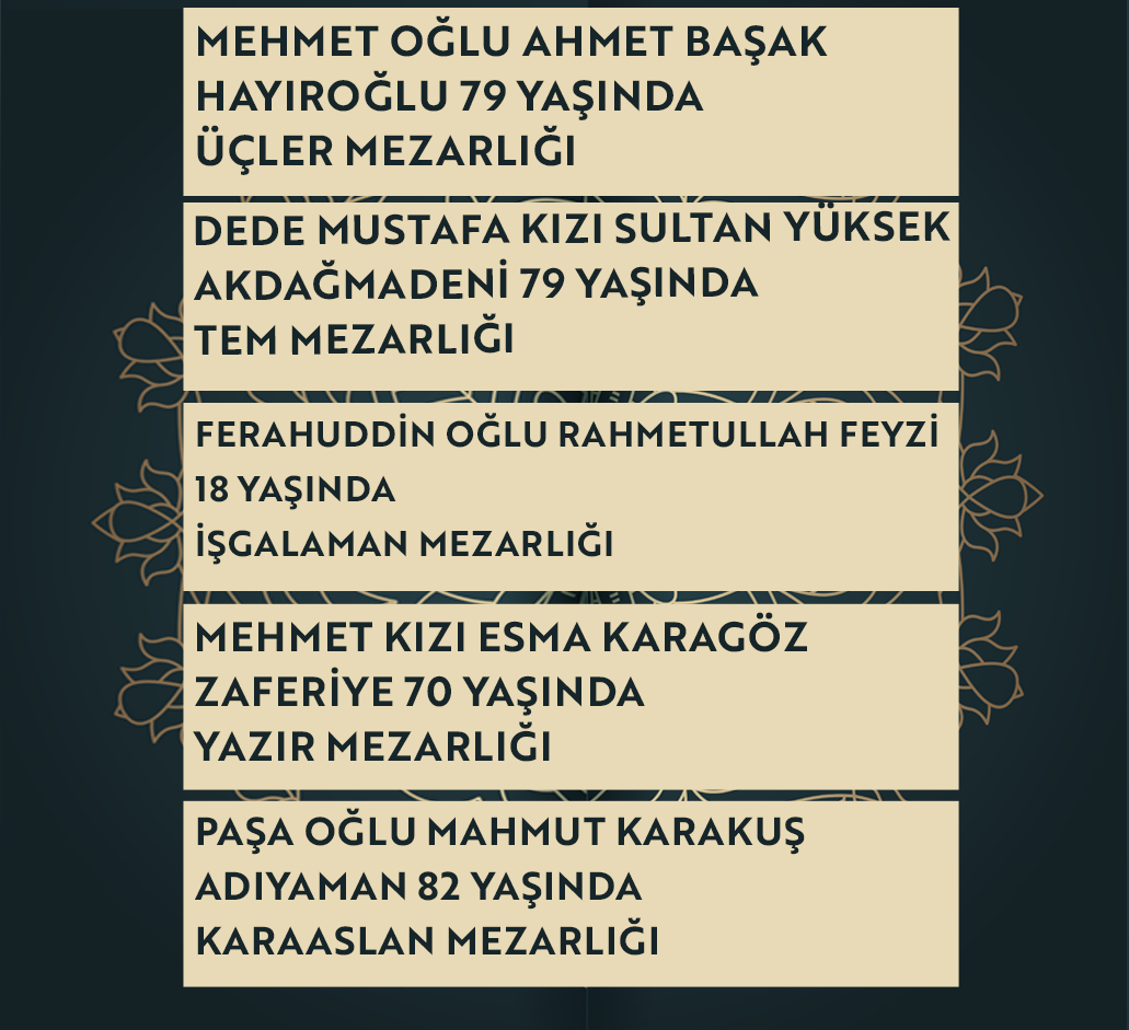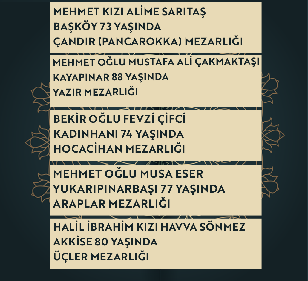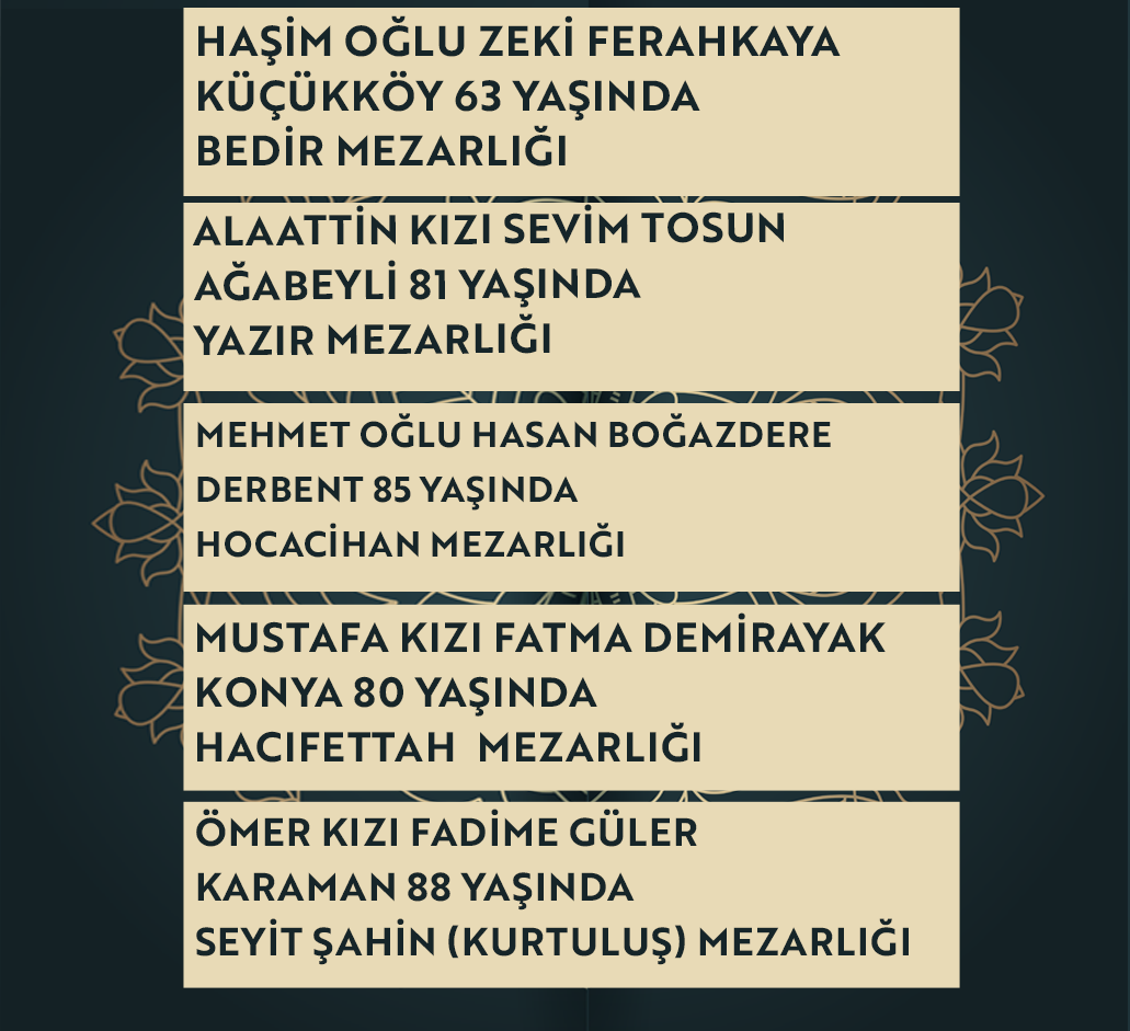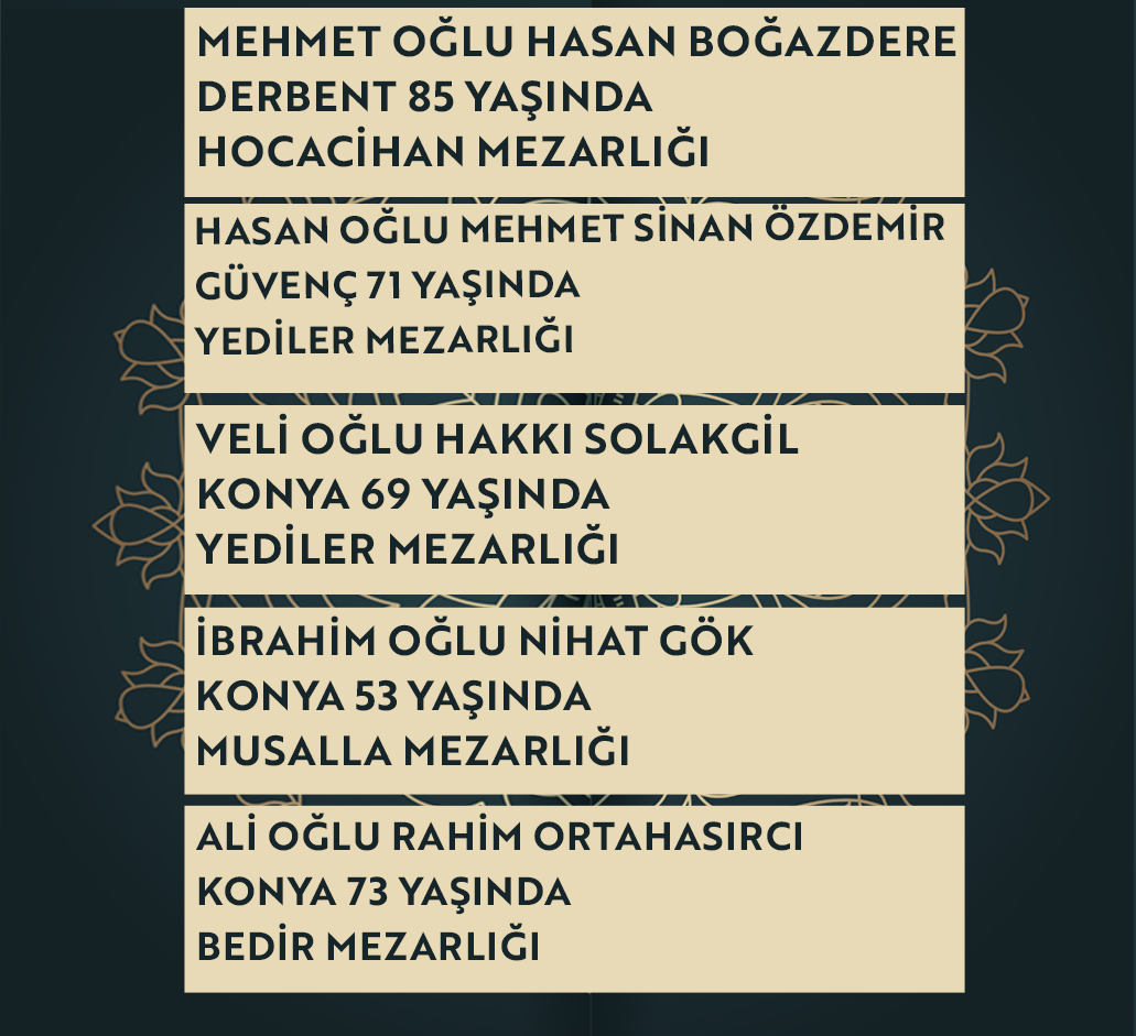 Bugün Konya’da hayatını kaybeden 22 kişi toprağa verildi. İşte 7 Ocak Çarşamba günü vefat edenler ve cenaze bilgileri.