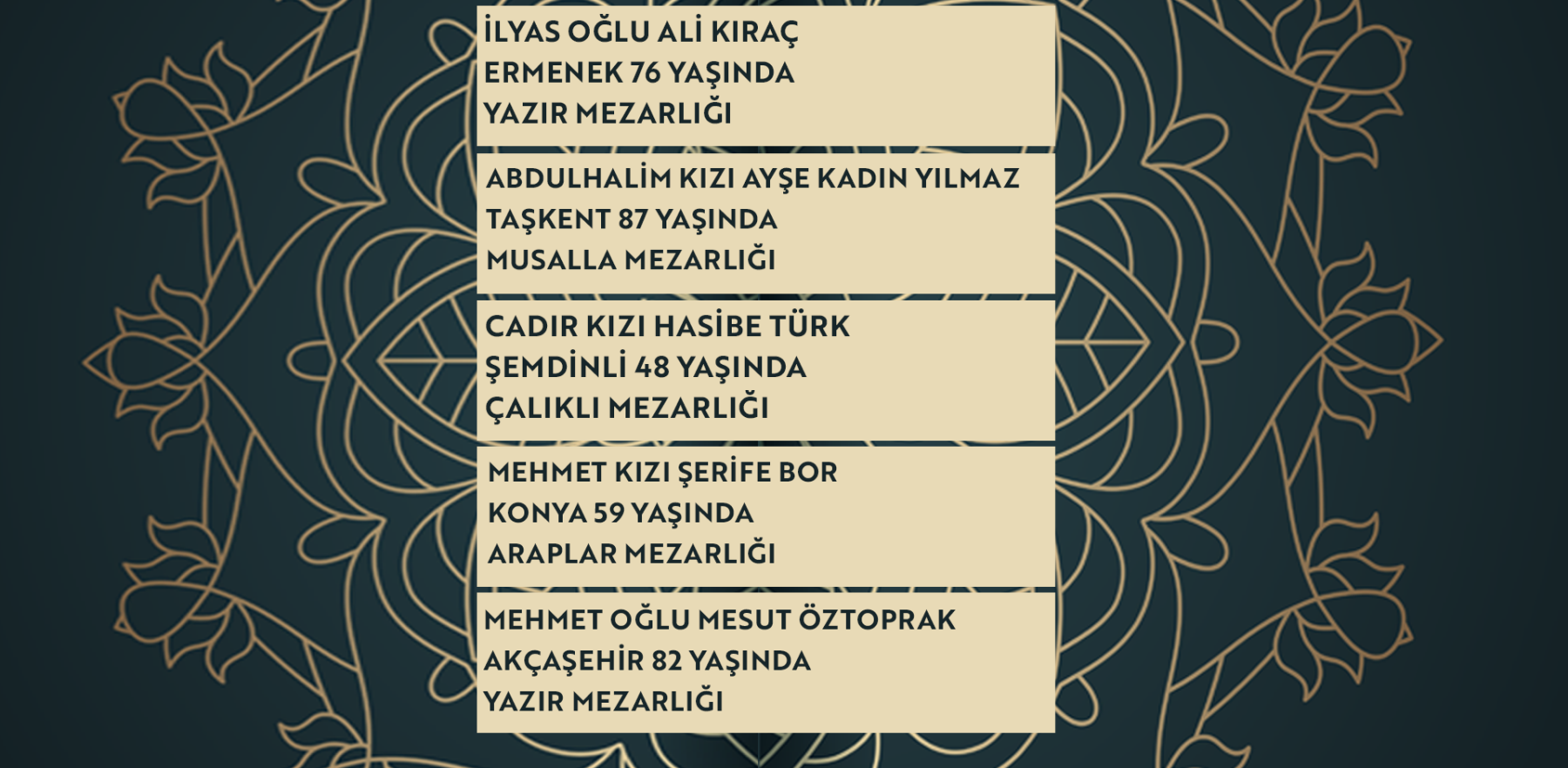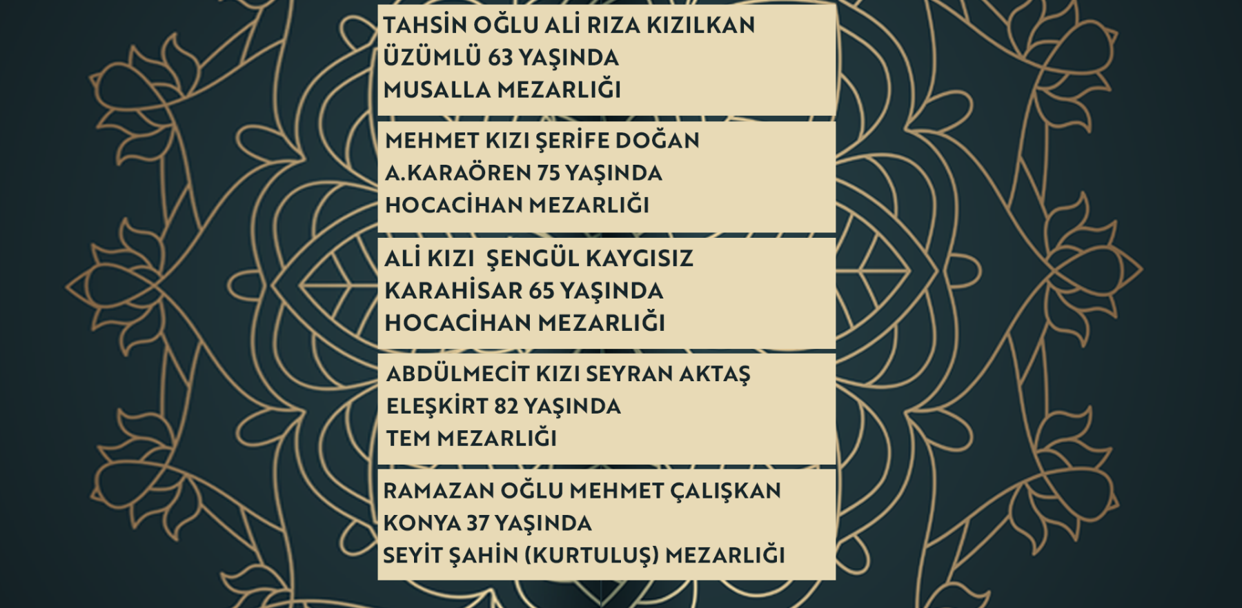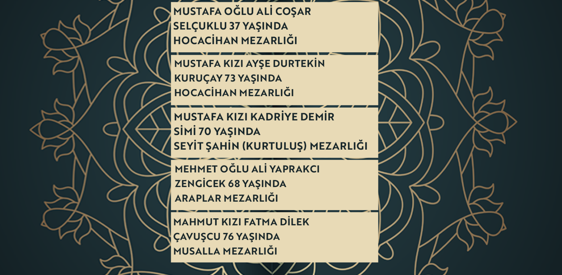 Bugün Konya’da hayatını kaybeden 19 kişi toprağa verildi. İşte 9 Mart Pazartesi günü vefat edenler ve cenaze bilgileri.