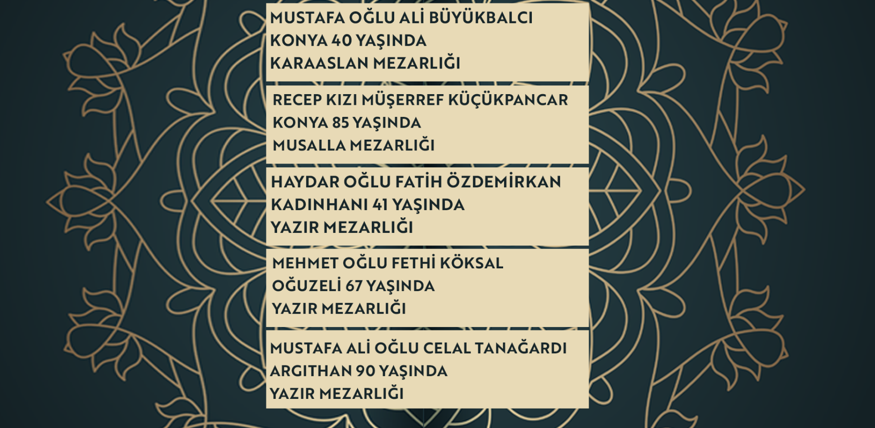 Konya'da bugün vefat edenler | 6 Mart 2026
