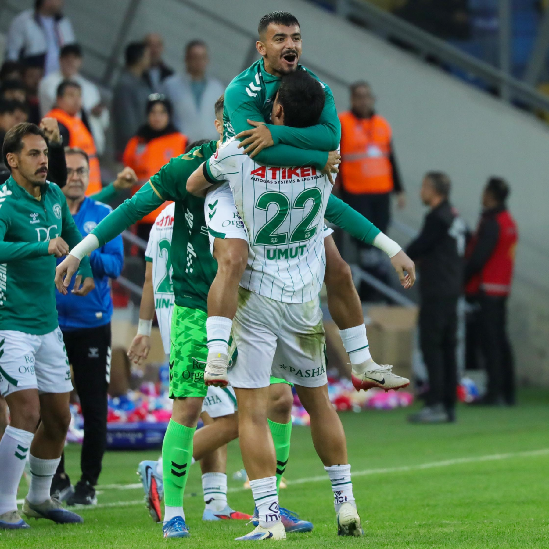 Konyasporlu taraftarlar Gençlerbirliği deplasmanında taraftarını yalnız bırakmadı. 90 dakika boyunca takımlarını destekleyen yeşil-beyazlı taraftalar maç sonunda Ankara’da galibiyet coşkusu yaşadı.