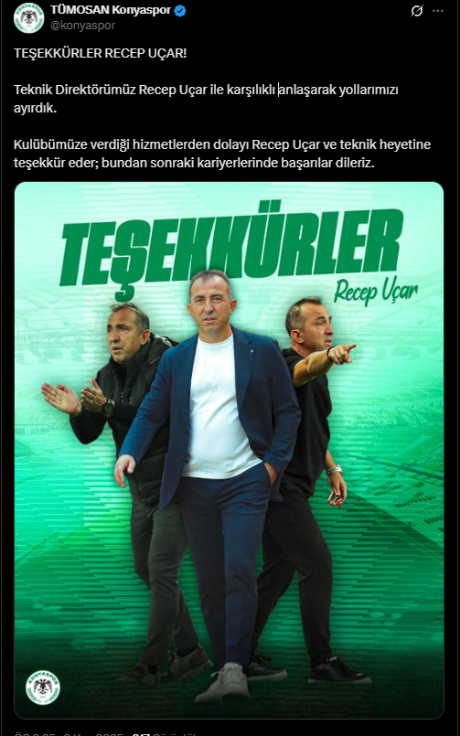 Recep Uçar, 31 Ekim 2024 tarihinde Ali Çamdalı’nın ayrılığının ardından Konyaspor’un başına geçmişti.