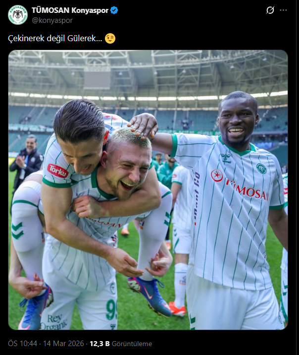 Tümosan Konyaspor ise galibiyetin ardından sosyal medyadan, “Çekinerek değil Gülerek” paylaşımı yaparak Serdar Dursun’a göndermede bulundu.