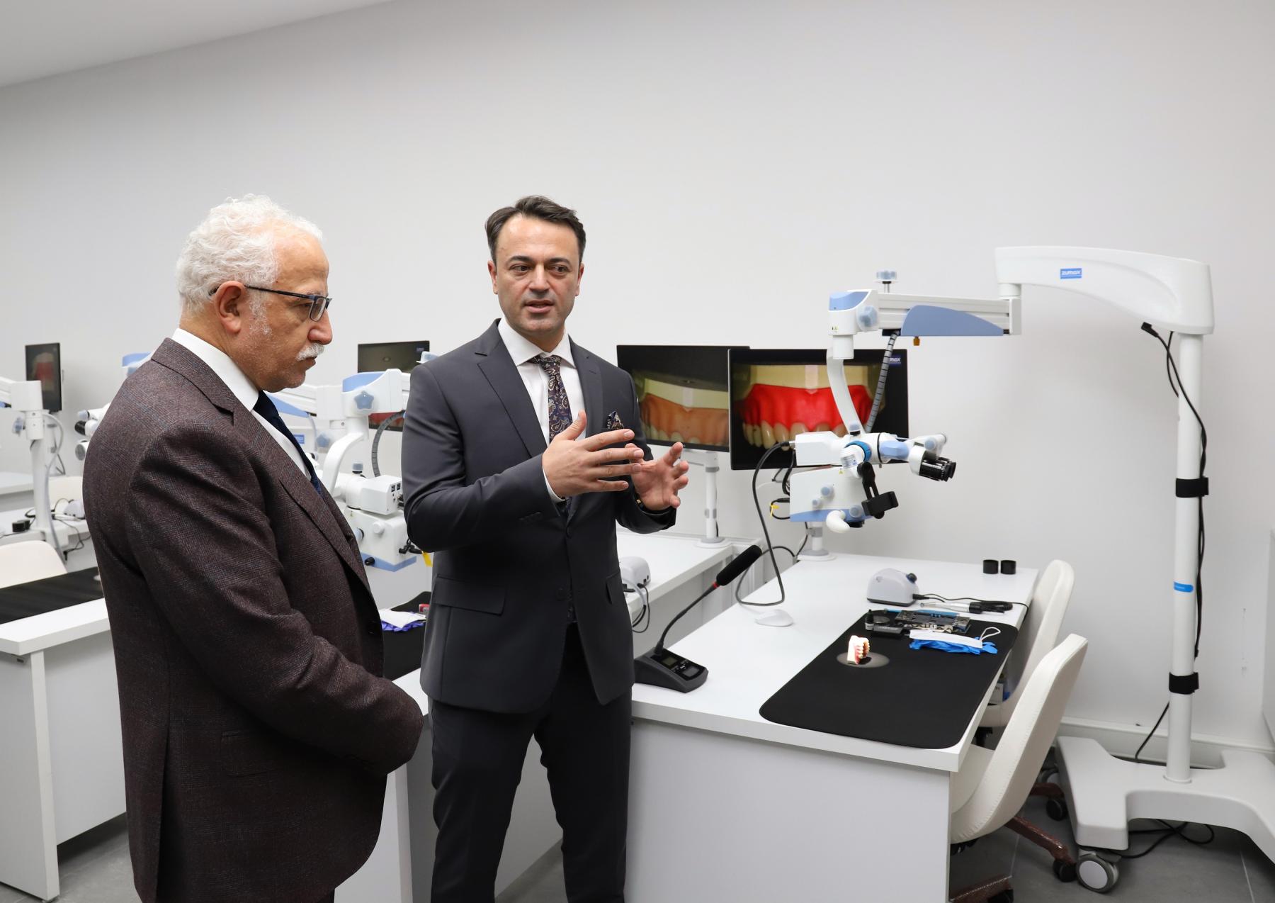 NEÜ Diş Hekimliği Fakültesi Dekanı Prof. Dr. Ali Rıza Tunçdemir ise, bilginin ve teknolojinin hızla yenilendiği bir dönemde eğitim altyapısının sürekli geliştirilmesinin büyük önem taşıdığını vurguladı. Mikroskop Destekli Eğitim Salonu ile öğrenciler, asistanlar ve serbest çalışan diş hekimlerine yönelik nitelikli eğitimler planladıklarını ifade eden Tunçdemir, ağız ortamının oldukça küçük bir çalışma alanı olduğunu belirterek, eğitim salonunda kullanılan mikroskopların yaklaşık 12,5 kat büyütme imkânı sunduğunu ve bu sayede daha başarılı ve uzun ömürlü restorasyonların yapılabildiğini söyledi. Devlet ve vakıf üniversiteleri arasında teknolojisi, altyapısı ve kullanım alanı bakımından ilk ve tek olma özelliğine sahip Dijital Simülasyon Merkezi’nde üçüncü sınıf öğrencilerinin hastayı birebir simüle eden cihazlarla eğitim aldığını, dördüncü sınıfta da klinik uygulamalara daha özgüvenli ve donanımlı şekilde geçtiklerini dile getiren Dekan Tunçdemir, bu sürecin öğrencilerin mesleki yeterliliklerini önemli ölçüde artırdığını belirtti.