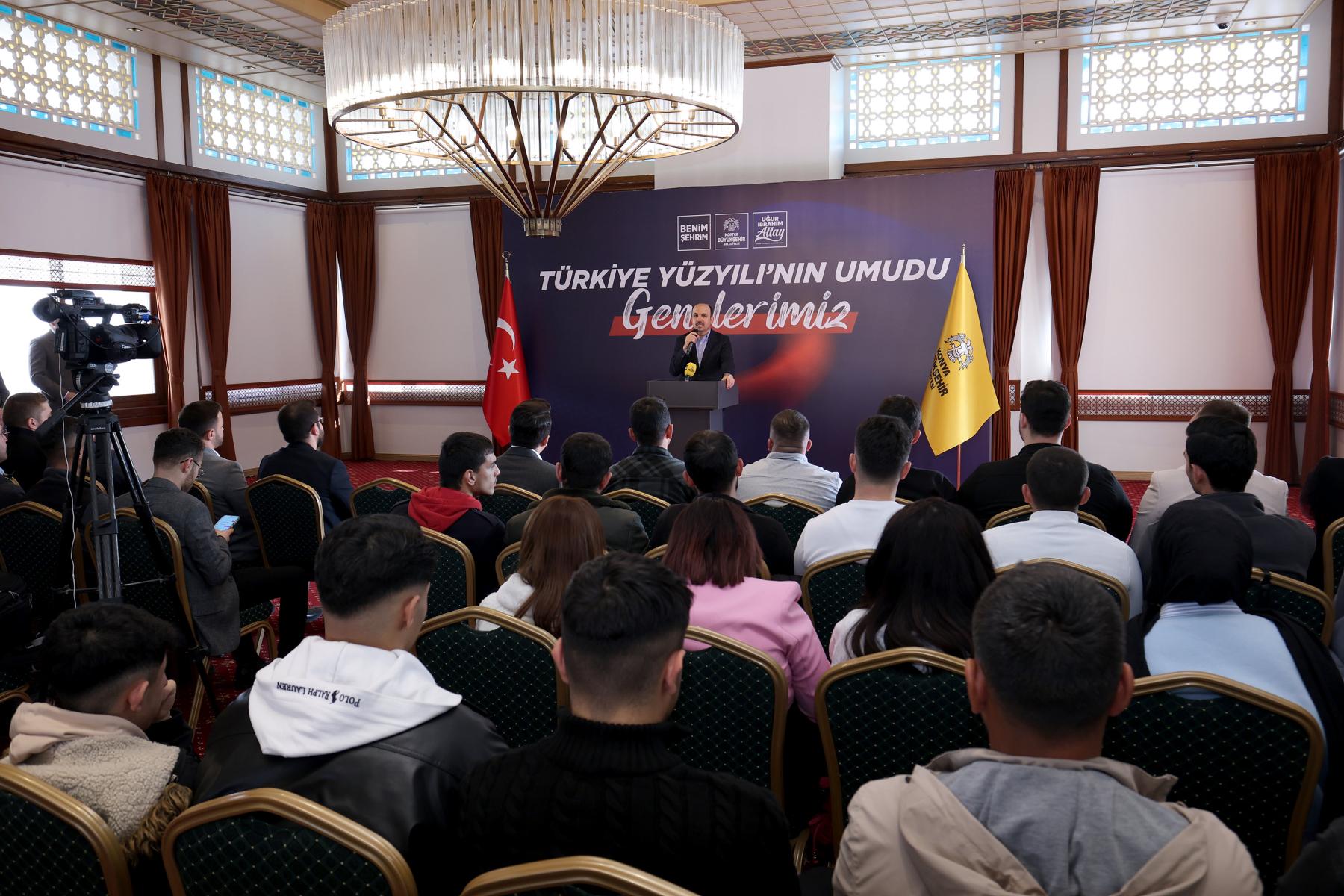 Konya Büyükşehir Belediye Başkanı Uğur İbrahim Altay, Büyükşehir Belediyesi’nin organizasyonuyla; Halkapınar, Ereğli, Karapınar, Güneysınır, Çumra, Akören, Akşehir, Çeltik, Yunak, Tuzlukçu, Doğanhisar ve Ilgın ilçelerinden gelen gençlerle bir araya geldi.