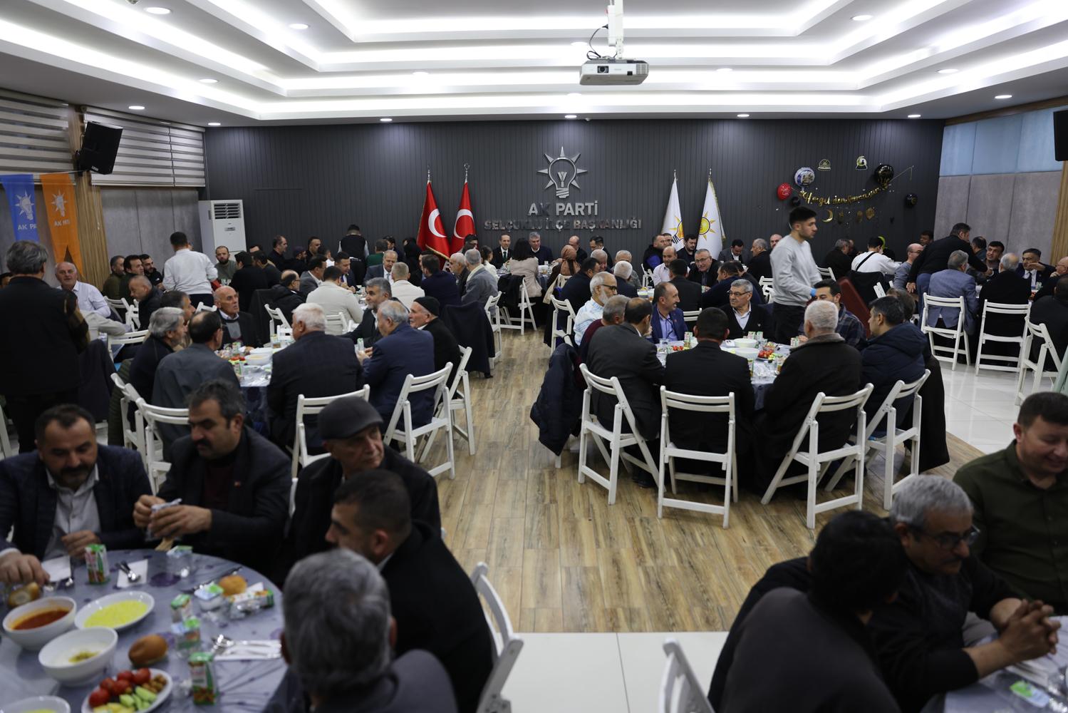 Yoğun geçen ziyaret programlarının ardından Başkan Pekyatırmacı ve MKYK Üyesi Akyüz, AK Parti Selçuklu İlçe Teşkilatı’nda, iftar programı kapsamında mahalle başkanları ve muhtarları ile bir araya geldi. İftar programının ardından Selçuklu Merkez Camii’nde teravih buluşmalarına katılan heyet, namaz sonrası vatandaşlarla hasbihal etti. Akyüz’ün programı Gazalya Hatun Mahalle Konağı’nda gerçekleştirilen mahalle toplantısı ile sona erdi.