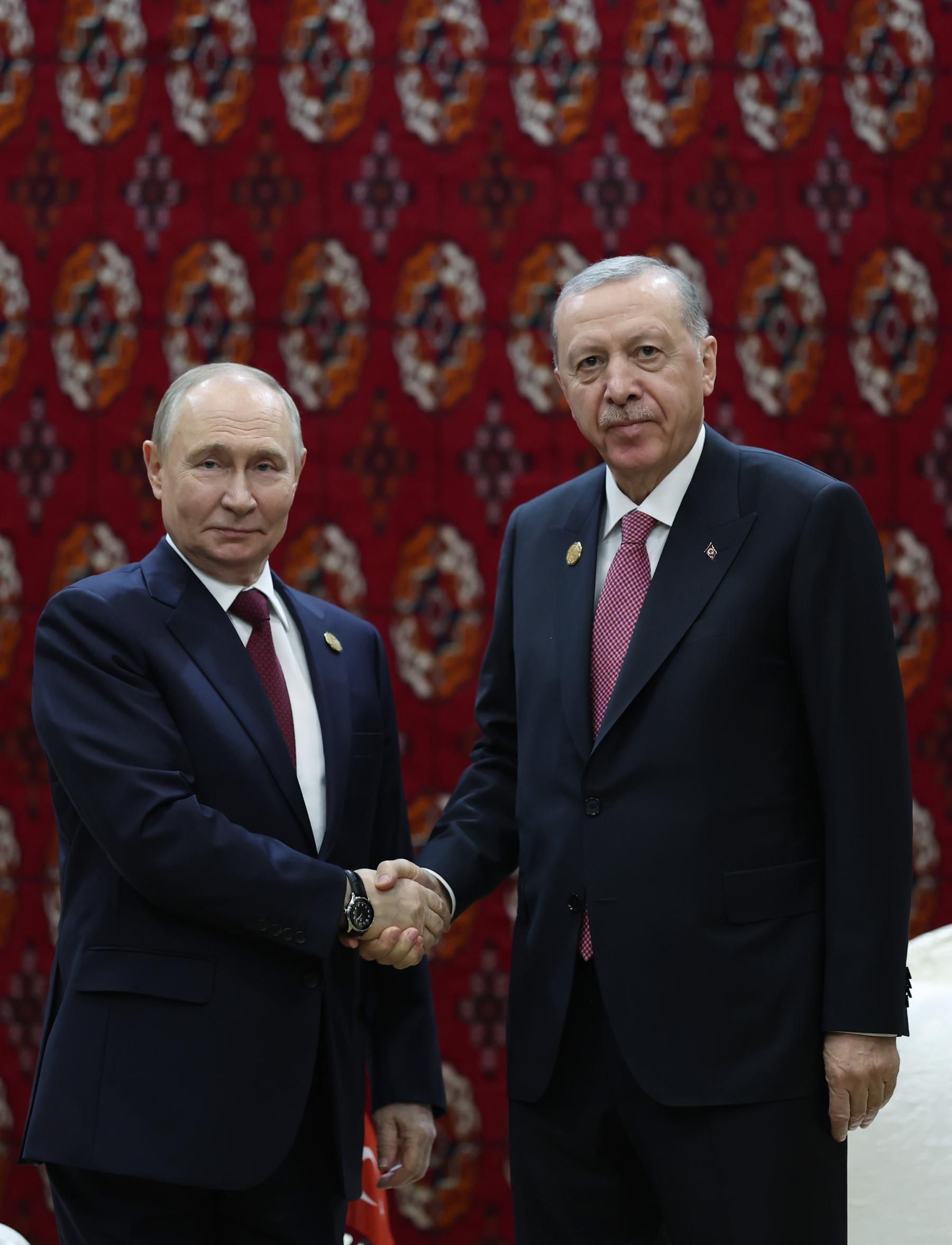 Cumhurbaşkanı Recep Tayyip Erdoğan, 2025 yılının Birleşmiş Milletler (BM) Genel Kurulu kararıyla Uluslararası Barış ve Güven Yılı ilan edilmesi ve Türkmenistan'ın daimi tarafsızlık statüsünün 30. yıl dönümü vesilesiyle düzenlenen Uluslararası Barış ve Güven Forumu'na katılmak üzere geldiği Türkmenistan'ın başkenti Aşkabat'ta forum marjındaki temaslarını sürdürüyor. İkili görüşmelerde bulunan Cumhurbaşkanı Erdoğan, Forum sonrası konakladığı otelde Rusya Devlet Başkanı Vladimir Putin ile bir araya geldi. Basına kapalı olarak gerçekleştirilen görüşme yaklaşık 90 dakika sürdü.