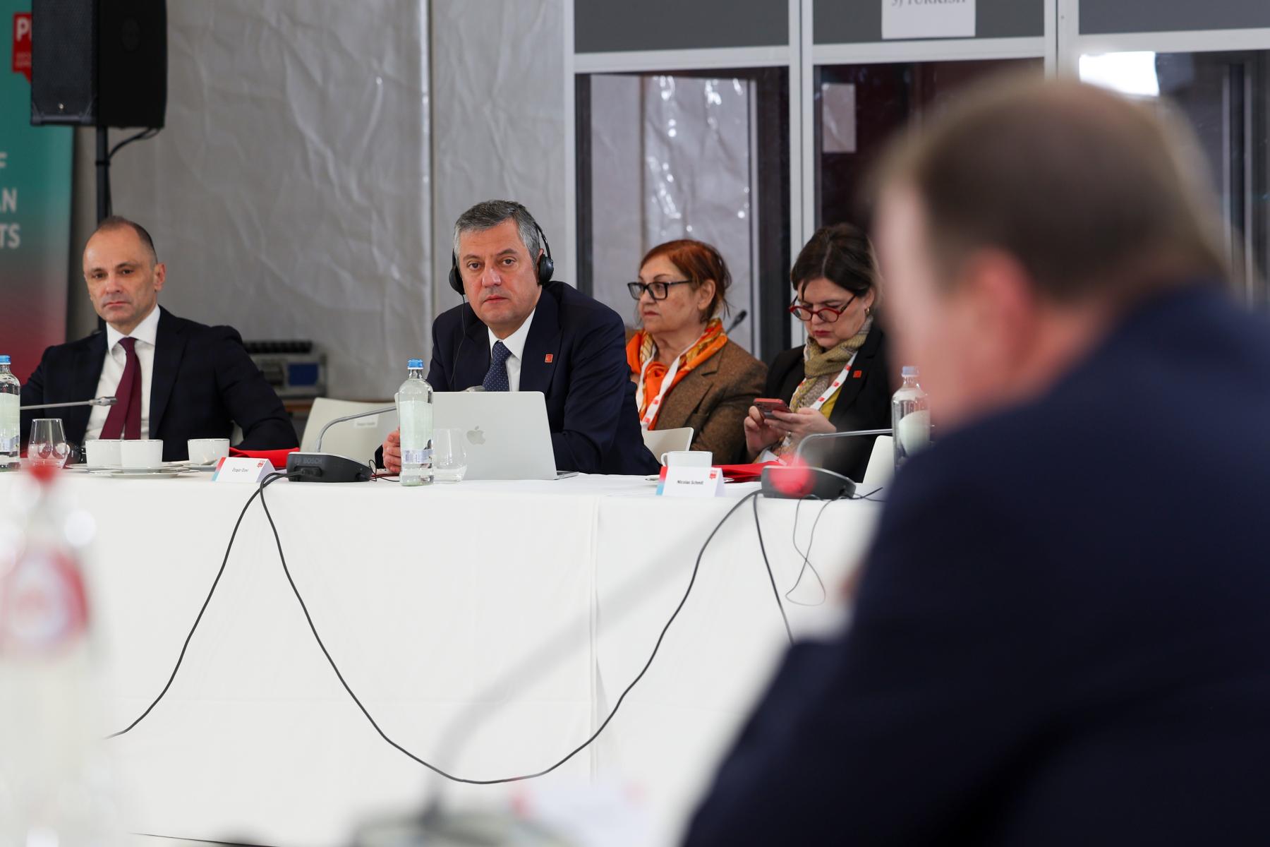 Özel, "Avrupa'nın güvenliği için demokratik ve güçlü bir Türkiye'ye, bu Türkiye'nin Avrupa Birliği'ne tam üye olmasına ve son 25 yılda Avrupa'nın yanı başında görülen korkulu rüyanın bitmesine ihtiyaç var. Ukrayna konusunda da Filistin konusunda da en net tavrımızı sürdürüyoruz. Filistin'in ne kadar yanındaysak, Ukrayna'nın da o kadar yanındayız. Yeni ortaya çıkan denklemler, ortaya çıkan ne olursa olsun hiçbirimiz bizi var edenin ne olduğunu, bizi buraya ne getirenin ne olduğunu unutmamalıyız. Bizi alnının teriyle geçinen işçiler, geleceğini bizde gören köylüler, ezilenler, sömürülenler, güvencesizler bu masanın başına onların hakkını koruyalım ve dünyadaki onların hakkını koruyan diğer partilerle ve liderlerle dayanışalım ve emek mücadelesini küresel olarak sürdürelim diye yolladılar. Bizi kendi ülkemizden buraya yolladılar ve diğer ülkelerin otoriterleri ile uzlaşalım ve çıkar ilişkileri kuralım diye yollamadılar. Hepinize çok teşekkür ediyorum" ifadelerini kullandı.