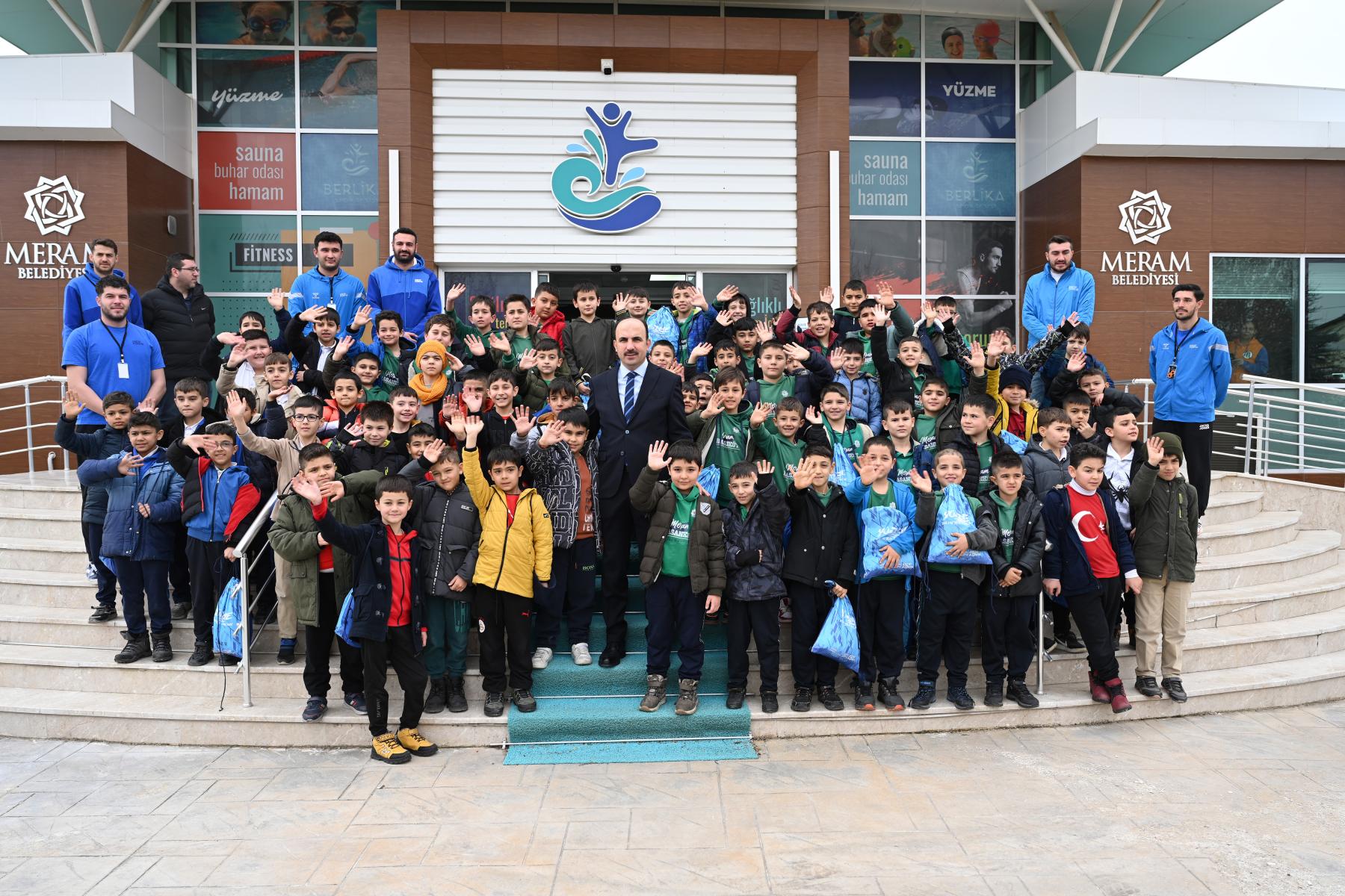 Konya Büyükşehir Belediye Başkanı Uğur İbrahim Altay, proje kapsamında Meram Belediyesi Berlika Spor Tesisi’nde yüzme eğitimi alan 3. sınıf öğrencilerini ziyaret etti.