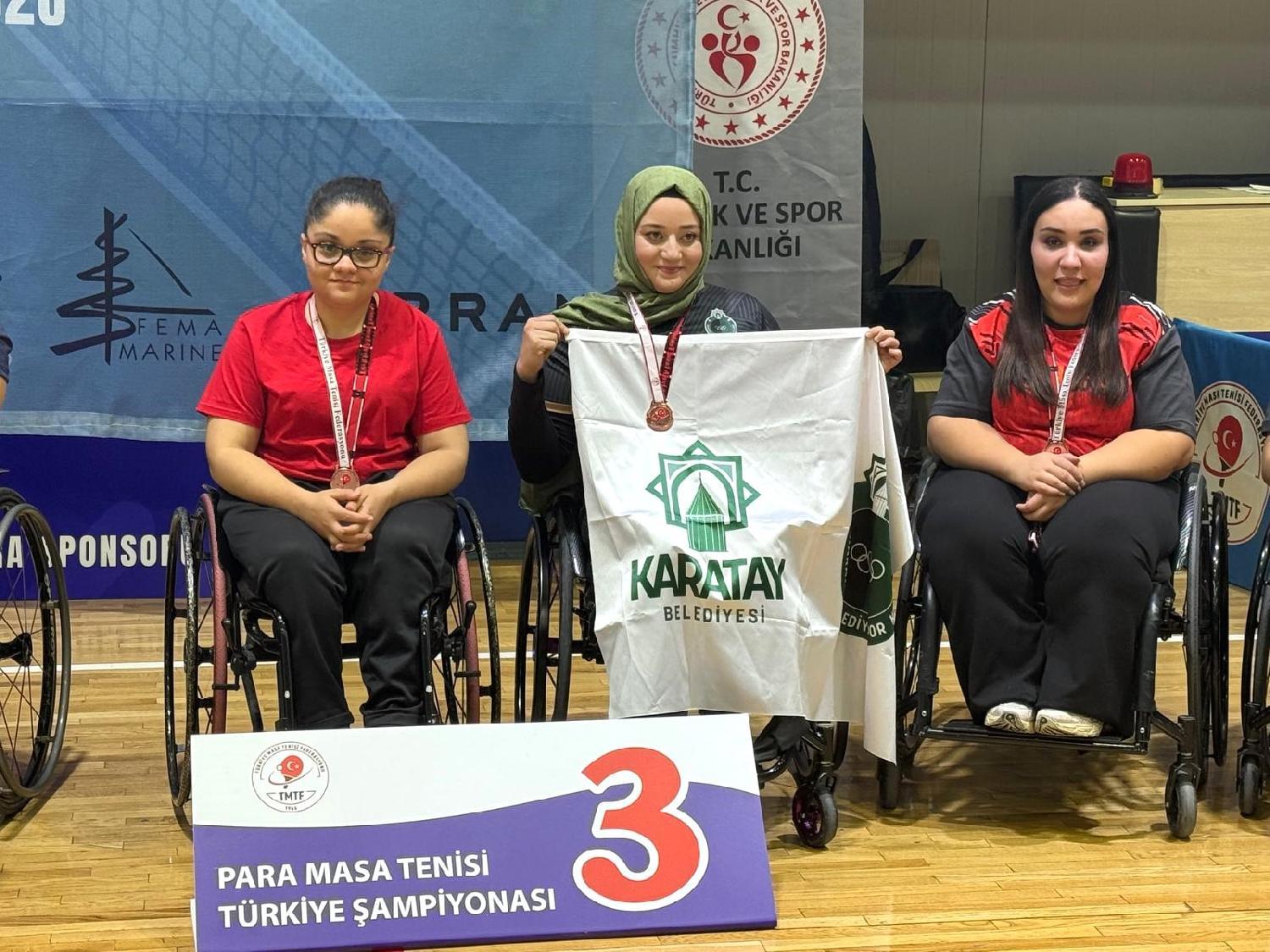 Para Masa Tenisi Türkiye Şampiyonası’nda takım halinde azimli ve kararlı bir mücadele gösteren Karatay Belediyespor Kulübü Masa Tenisi Takımı, turnuvayı 2 altın, 1 gümüş ve 2 bronz madalya ile tamamlayarak Karatay’ı zirveye taşıdı.