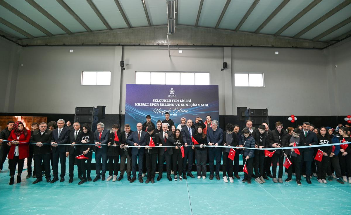 Konuşmaların ardından Selçuklu Fen Lisesi Kapalı Spor Salonu ve Suni Çim Saha’nın açılışı protokol üyeleri tarafından gerçekleştirildi.