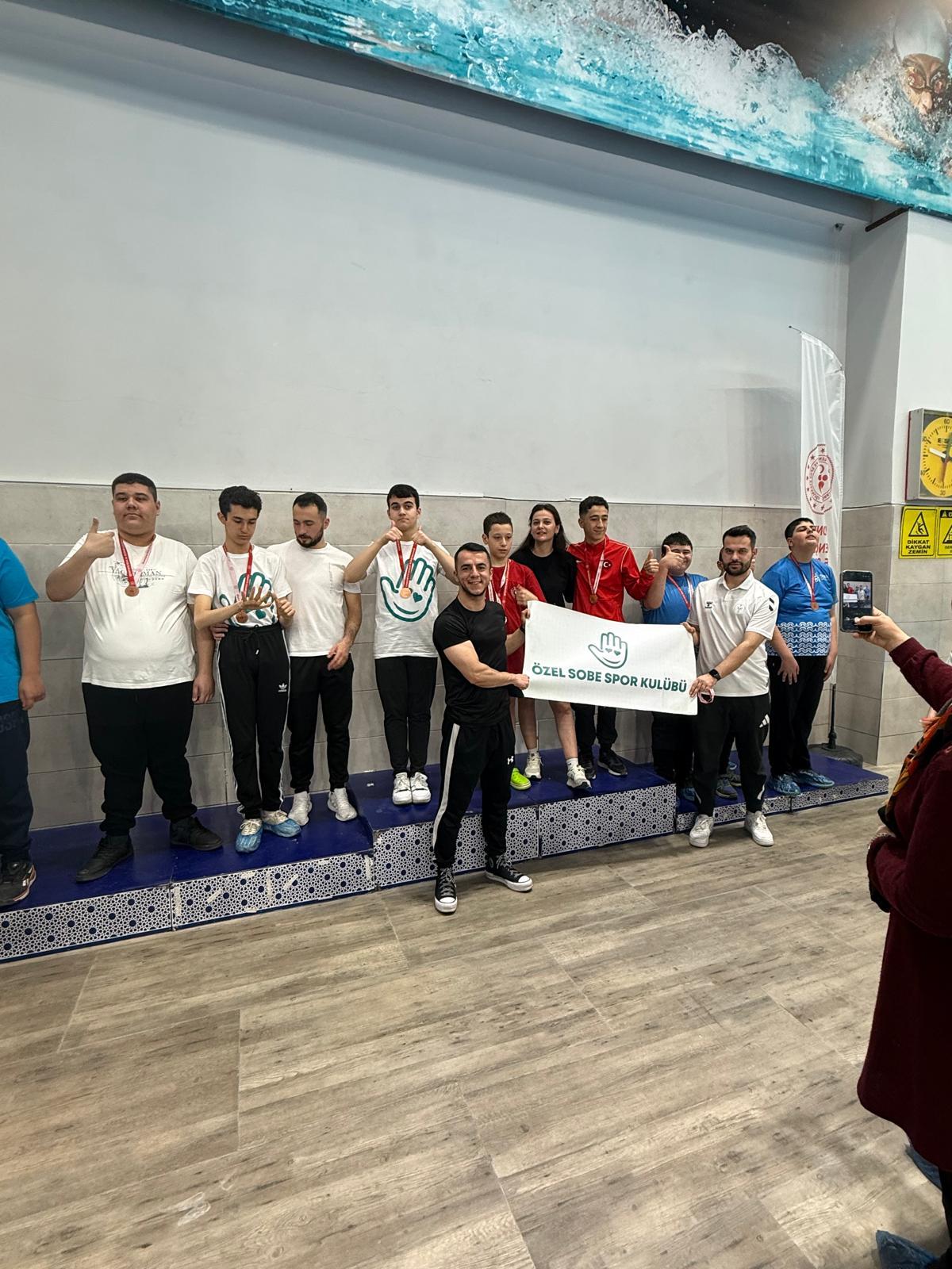 SOBE Vakfı bünyesinde faaliyet gösteren Özel SOBE Spor Kulübü, spor tarihinde bir ilke daha imza attı. 14-15 Mart 2026 tarihlerinde Konya Olimpik Yüzme Havuzu’nda düzenlenen Özel Sporcular Yüzme İl Birinciliği’ne 18 sporcu ile katılan kulüp, toplamda 28 madalya kazanarak dikkatleri üzerine çekti. Kulüp tarihinin en geniş katılımlı organizasyonuna damga vuran sporcular, büyük heyecana sahne olan yarışmalar sonucunda 17 altın, 6 gümüş ve 5 bronz madalya ile kulüp tarihinin en yüksek madalya sayısına ulaştı. Bu başarıyla birlikte sporculardan Alper Akgül, 9 stilde altın madalya kazanarak önemli bir performans sergiledi. Aynı zamanda 50 metre serbest, 50 metre kelebek, 50 metre sırt, 100 metre sırt ve 200 metre sırt yarışlarında milli takım aday kadro katılım barajını geçerek Türkiye Şampiyonası’na katılım hakkı elde etti..jpg)